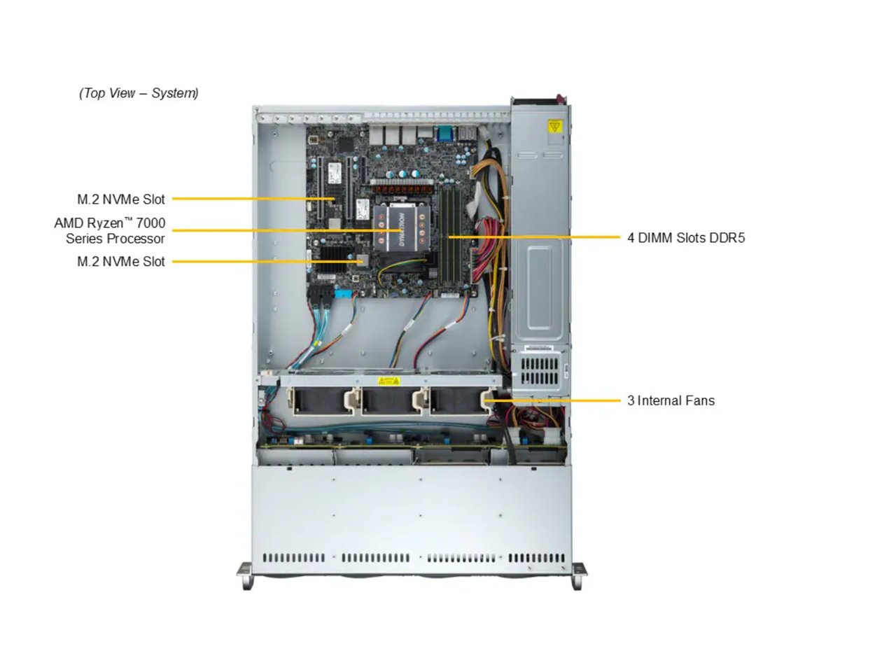 - AMD EPYC™ 4004 / 4005 or Ryzen™ 7000 / 9000 series LGA1718 up to 170W TDP Processors
