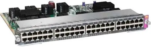 The Cisco Catalyst 4500E Series 48-port Gigabit Ethernet line cards provide high-performance 10/100/1000 switching. Two types of E-Series line cards are available, based on the per-slot bandwidth: 47xx line cards that drive 48 Gbps per slot, and 46xx line cards that drive 24 Gbps per slot. The Cisco Catalyst 4500 48-port 10/100/1000 PoEP E-Series 47xx line card provides standard IEEE 802.3at PoEP support on all 48 ports simultaneously. All series 47xx line cards support standard IEEE 802.1AE encryption and Cisco TrustSec™ in hardware. The Cisco Catalyst 4500 48-port 10/100/1000 line cards are available in four versions: Data Only, PoE, PoEP, and UPOE.