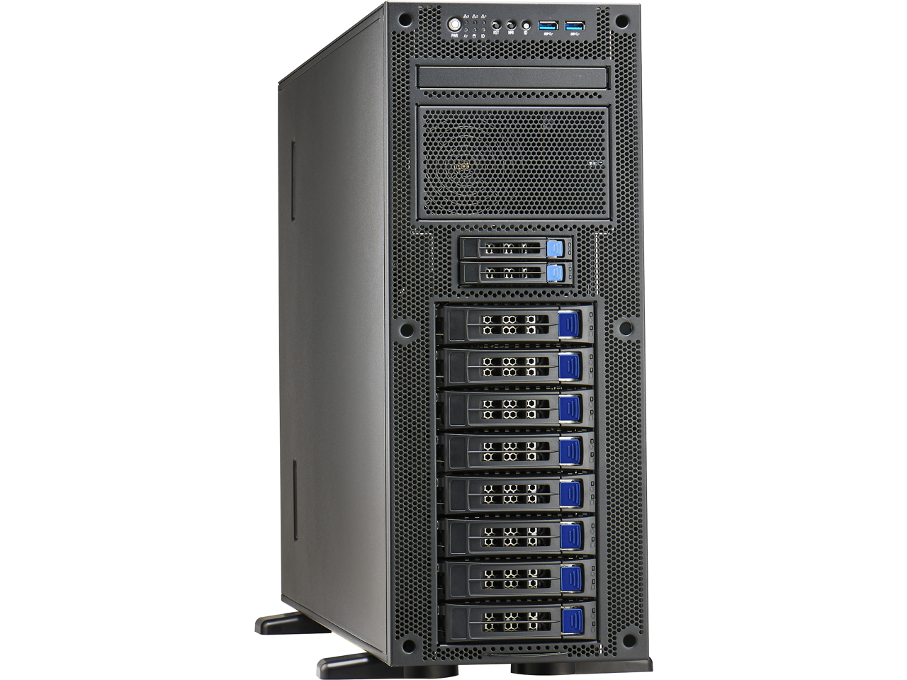 8 3.5" SATA + 2 NVMe U.2 hot-swap, tool-less drive bays