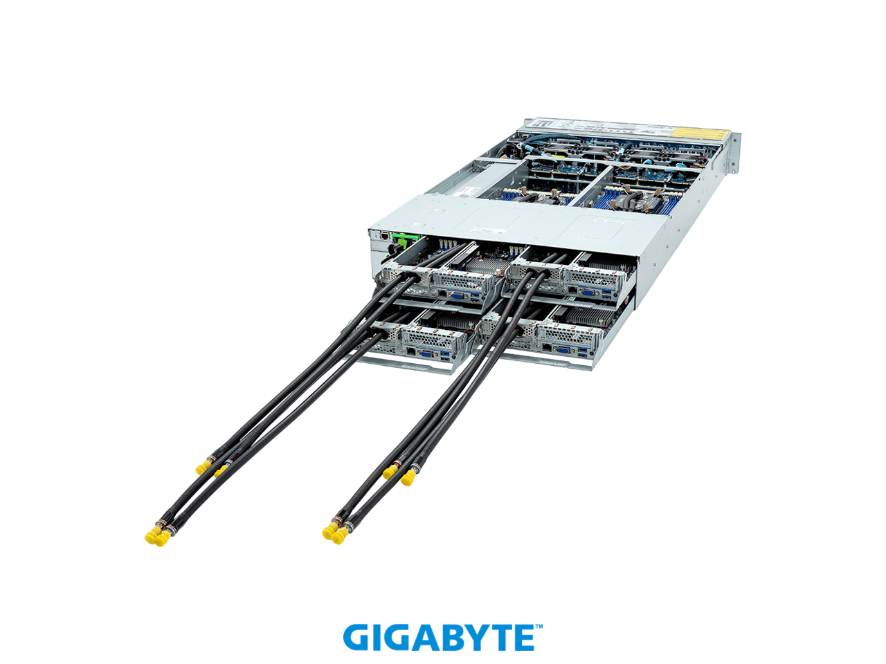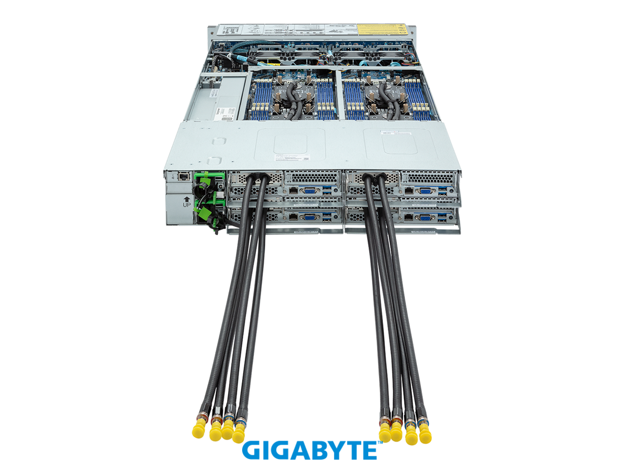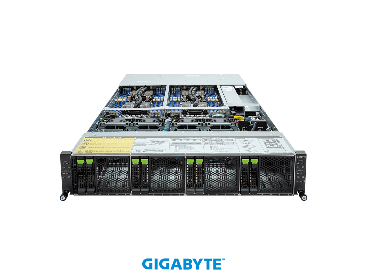 GIGABYTE H263-S63- LAW1 High Density Server - 5th/4th Gen Intel® Xeon® Scalable - 2U 4-Node DP 8-Bay Gen4 NVMe/SATA/SAS 3000W DLC