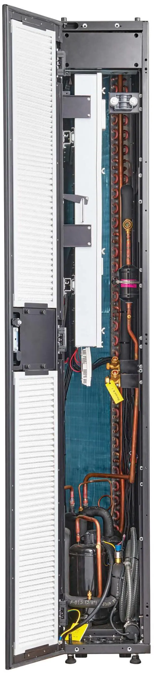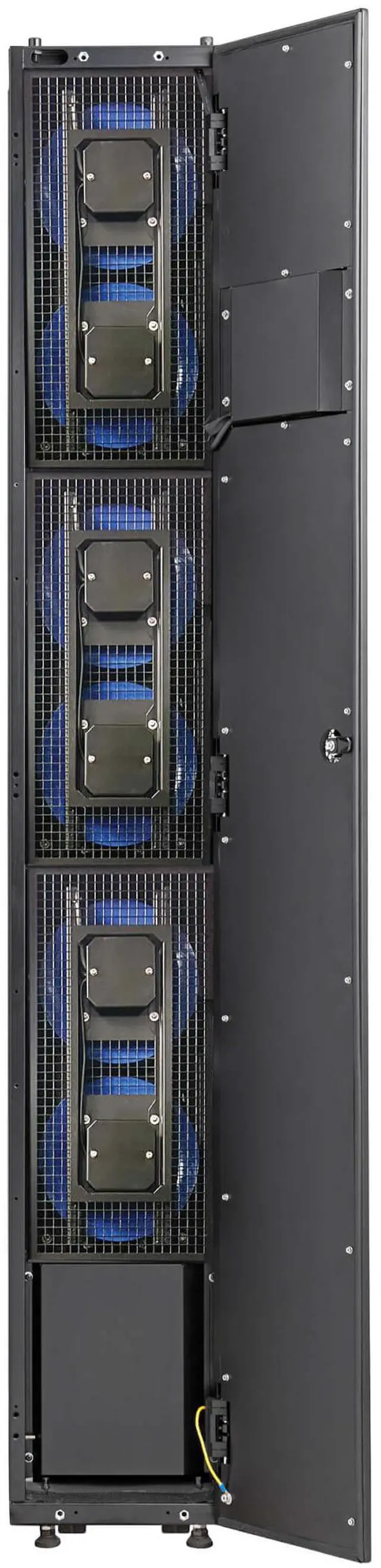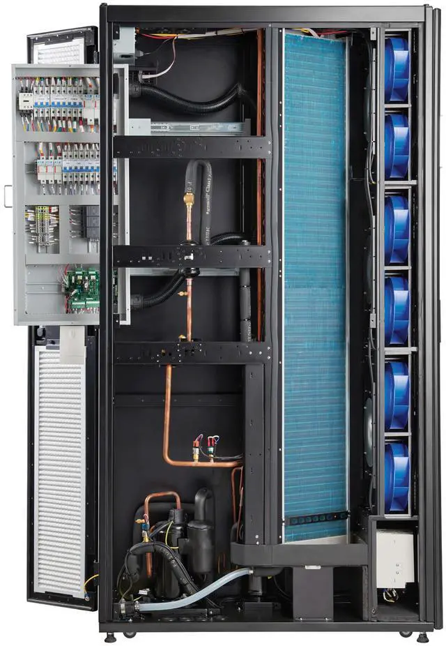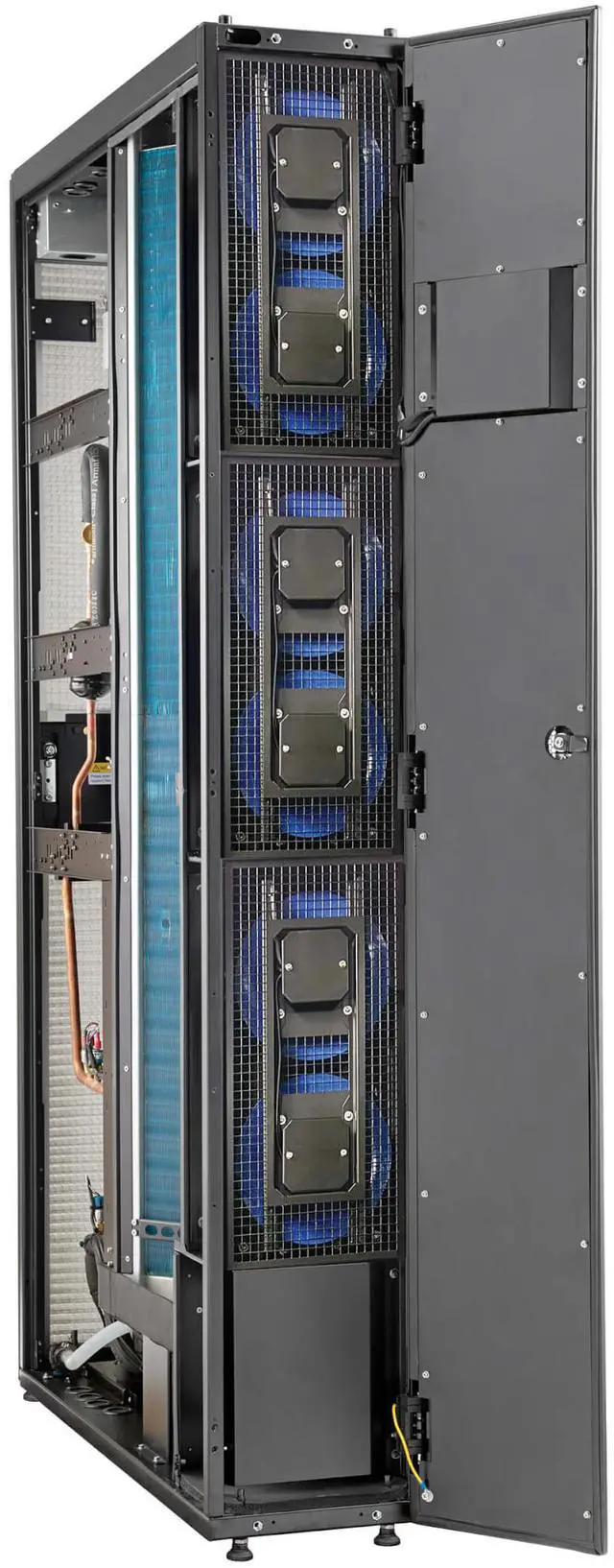 | Features | Slim Air Conditioning System Saves Space While Delivering Primary Precision Cooling Uses DX Technology to Deliver Cool Air to Loads High Cooling Efficiency Saves You Money Inverter compressor and EC fan technology automatically regulate cooling output to match heat load and conserve energy during off-peak hours, lowering your overall energy costs and lengthening the lifespan of the equipment being cooled. Easy to Operate with the Color Touchscreen Reconfigure Your Cooling Needs as Your Equipment Needs Change The modular, in-row cabinet design easily facilitates expansion or movement on its built-in casters, allowing your increasing cooling needs to be reconfigured as your data center grows. Pre-Installed WEBCARDLXMINI Network Interface Offers 24/7 Access Designed for Simple Maintenance and Convenience By placing the SRCOOLDXRW25 close to a rack, you can eliminate hot spots. |