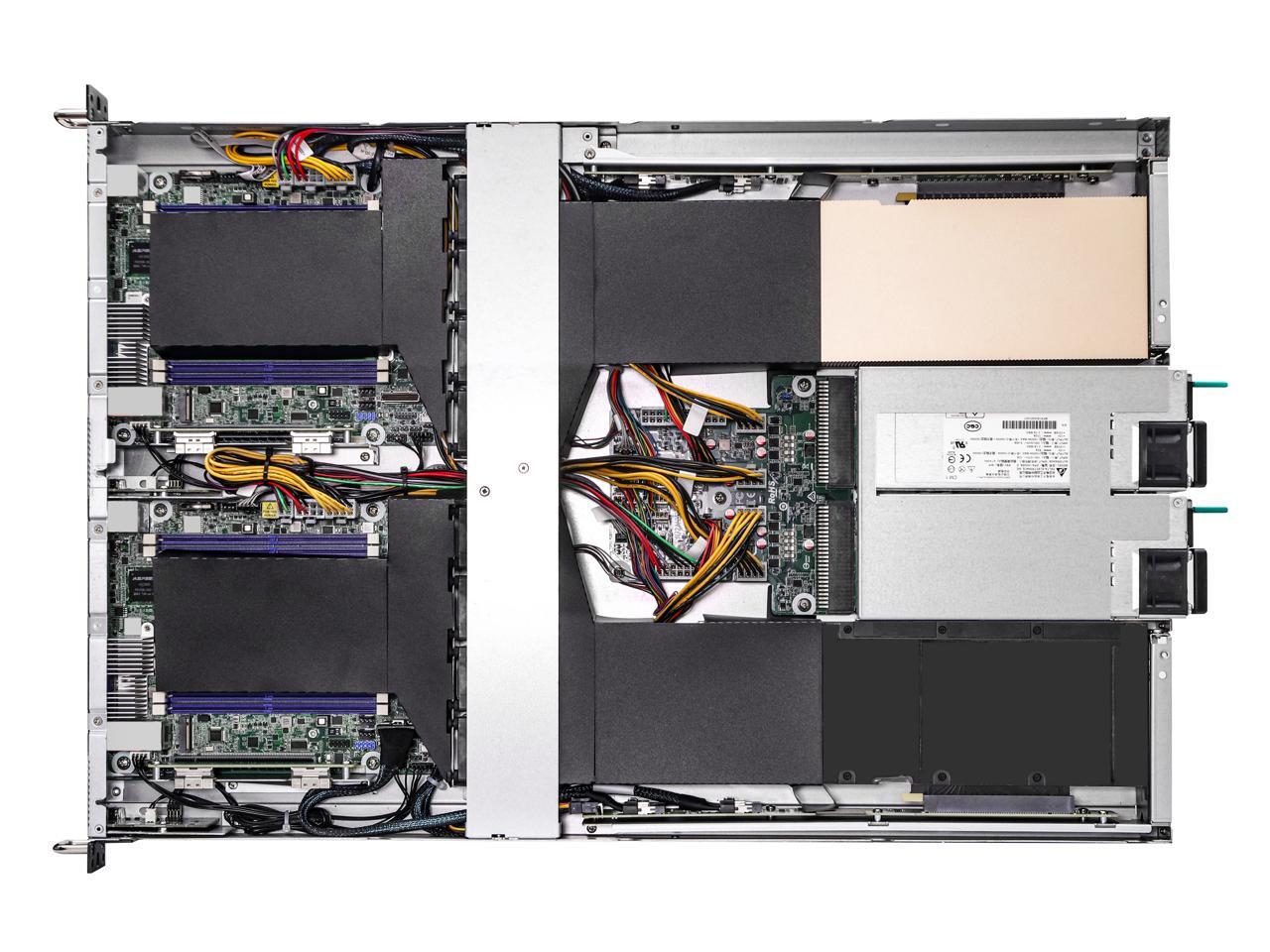 - 1U chassis with 2 nodes, 1+1 1600W CRPS