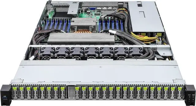 ASRock Rack Server Barebone 1U24E1S-GENOA/2L2T 24 Hot-swap E1.S Single Socket SP5 (LGA 6096), supports AMD EPYC™ 9004 (with AMD 3D V-Cache™ Technology) and 97x4 series processors
