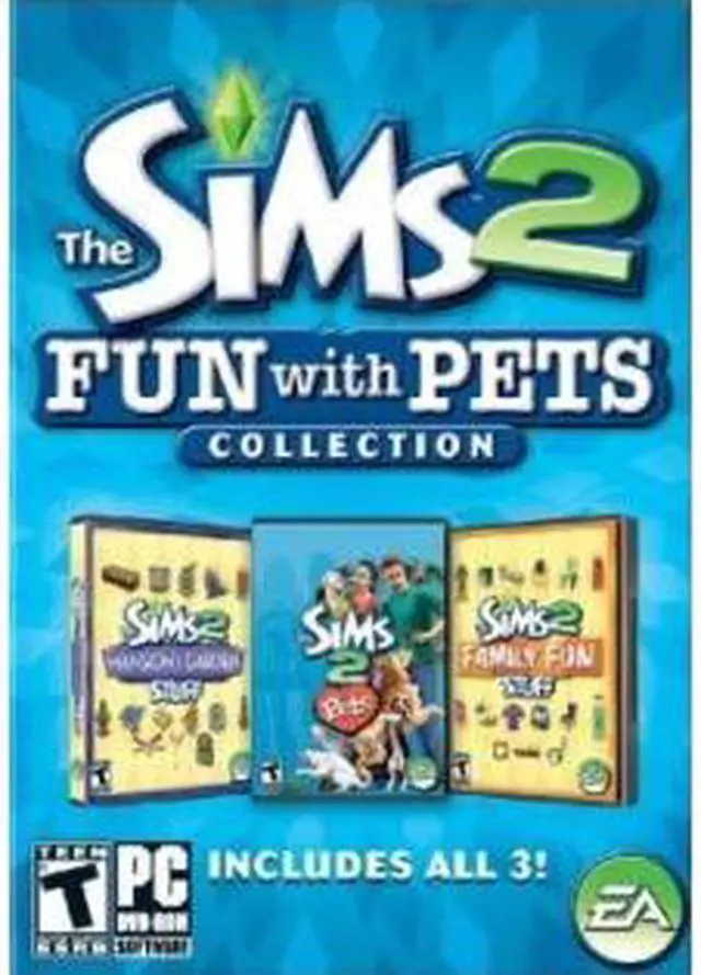 | Feature | This diverse collection includes The Sims 2 Pets, The Sims 2 Mansion & Garden Stuff and The Sims 2 Family Fun Stuff. Liven up the happy homes of your Sims characters with a cat, dog, bird or other pet, all while pampering your Sims with exciting new architecture, landscaping and fashion options. There are a variety of new ways to keep your Sims happy, fulfilled and exploring new challenges. The Sims 2 Fun with Pets Collection lets you treat your Sims to a feathered or furry companion. This new animal friend will provide plenty of opportunities for fun and play. You'll also be able to utilize new architecture styles and garden options, improving each Sim home with items rich in color and beauty. Discover many ways to add more zest to the lives of your Sims with this dynamic collection. Features Includes The Sims 2 Pets, The Sims 2 Mansion & Garden Stuff and The Sims 2 Family Fun Stuff Choose from a selection of pet breeds, including dogs, cats, birds and more, and do your best to keep each one happy Customize the style of a home with new architectural elements that are visually impressive Enhance the look of a garden with all-new garden options Dress your Sims in matching attire for a funny family day Requires The Sims 2, The Sims 2 Deluxe, The Sims 2 Double Deluxe or The Sims 2 Holiday Edition |
