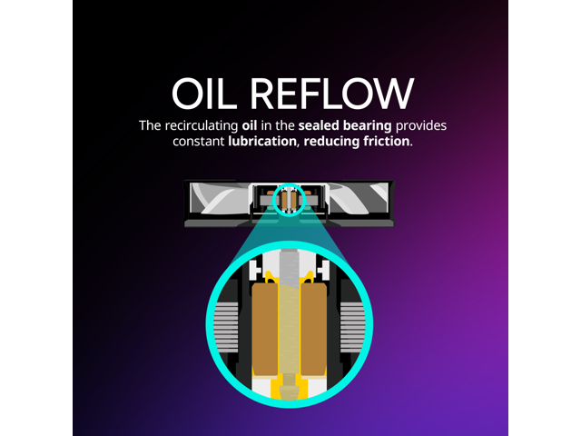 - Oil Reflow: The recirculating oil in the sealed bearing provides constant lubrication, reducing friction.