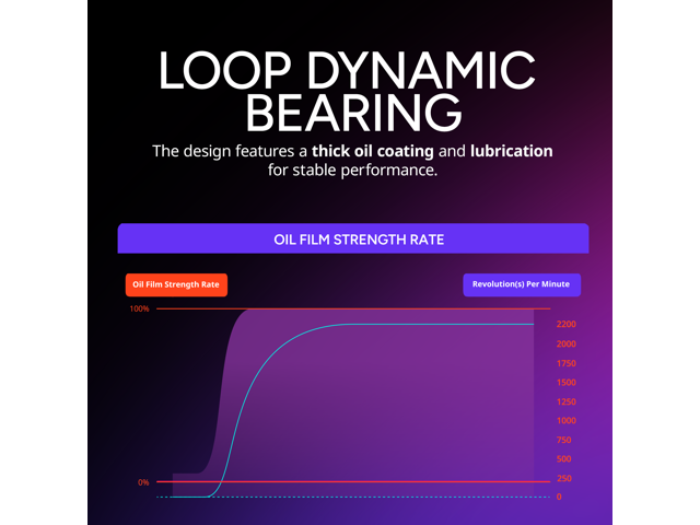 - Loop Dynamic Bearing: The design features a thick oil coating and lubrication for stable performance.