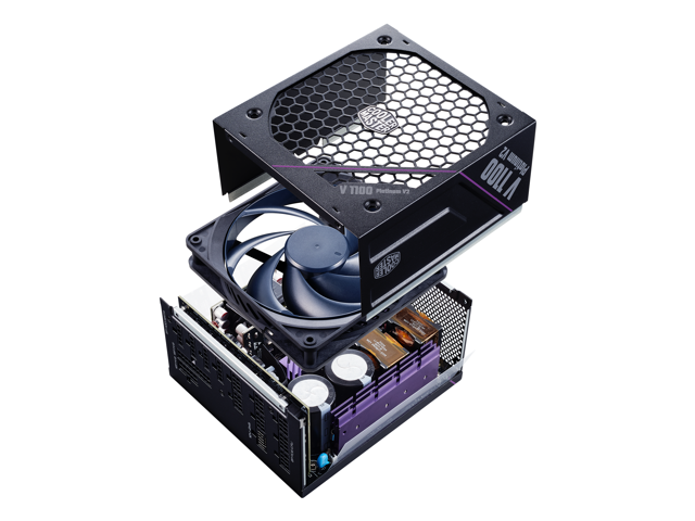 Cooler Master V Platinum 1100 V2 ATX 3.1 Full Modular PSU, 1100W 80+ Platinum, 90° 12VHPWR|600W PCIe 5.1, Purple Anodic-Coated Heat Sink, Mobius Fan, GPU Support RTX 5090| RX 9070 XT, 12 Year