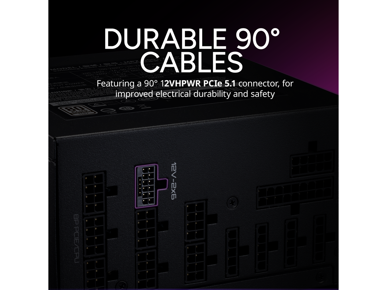 - 90° Durable Cables: Featuring a 90° 12VHPWR PCIe 5.1 connector, for improved electrical durability and safety.