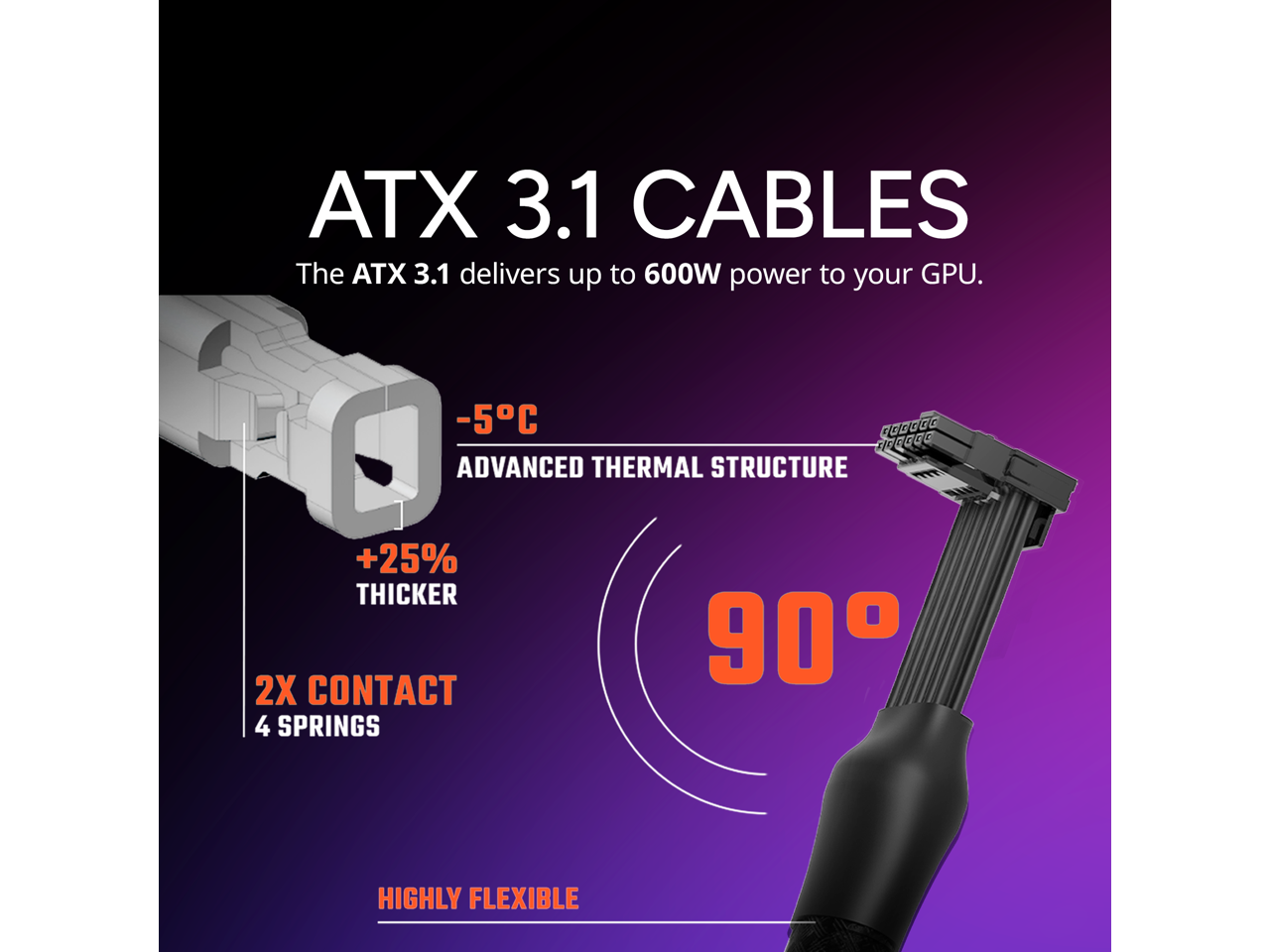 - ATX 3.1 Cables: The ATX 3.1 delivers up to 600W power to your GPU.