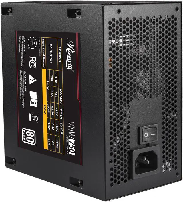Rosewill VNW 750W 80+ White Certified, Non-Modular Active PFC Design, Low-Noise Power Supply, High Quality Electrolytic Capacitor, 120mm FDB Silent Fan - 5 Year Warranty - VNW750
