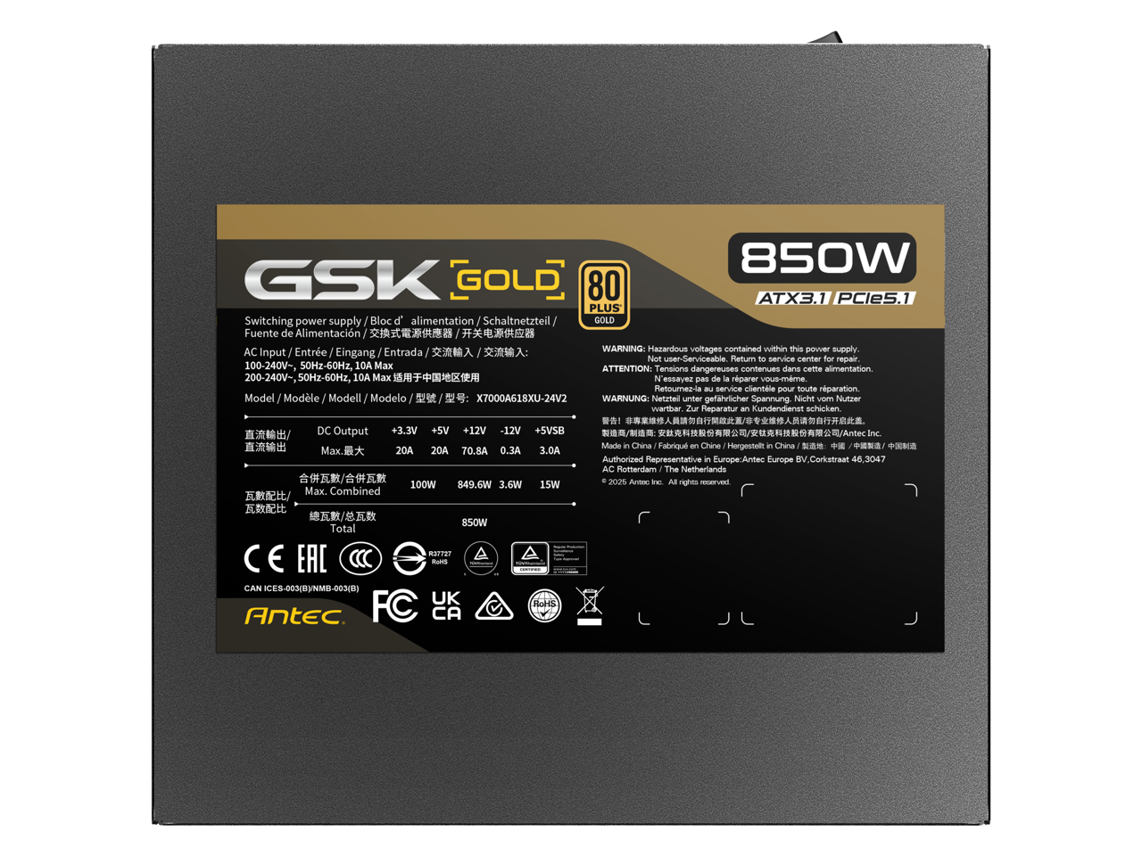 ANTEC GSK850 V2 ATX3.1, 750W Full Modular PSU, 80 PLUS Gold Certified, PCIE 5.1 Support, PhaseWave Design, Zero RPM Manager, 120mm Silent Fan, 10-Year Warranty, High-Quality Braided Cable