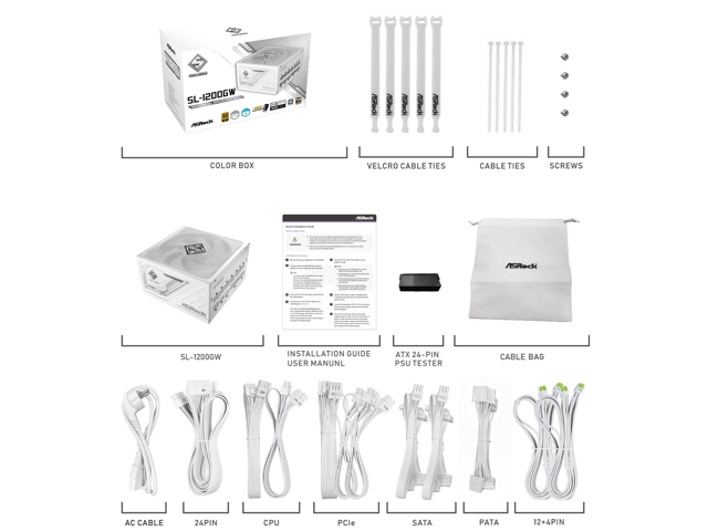 ASRock Steel Legend SL-1200GW 1200W 80 PLUS GOLD & Cybenetics PLATINUM Full Modular Power Supply, ATX3.1 & PCIe5.1 Ready with Dual Color 12V-2x6 Cable, 10 Years Warranty, White Edition