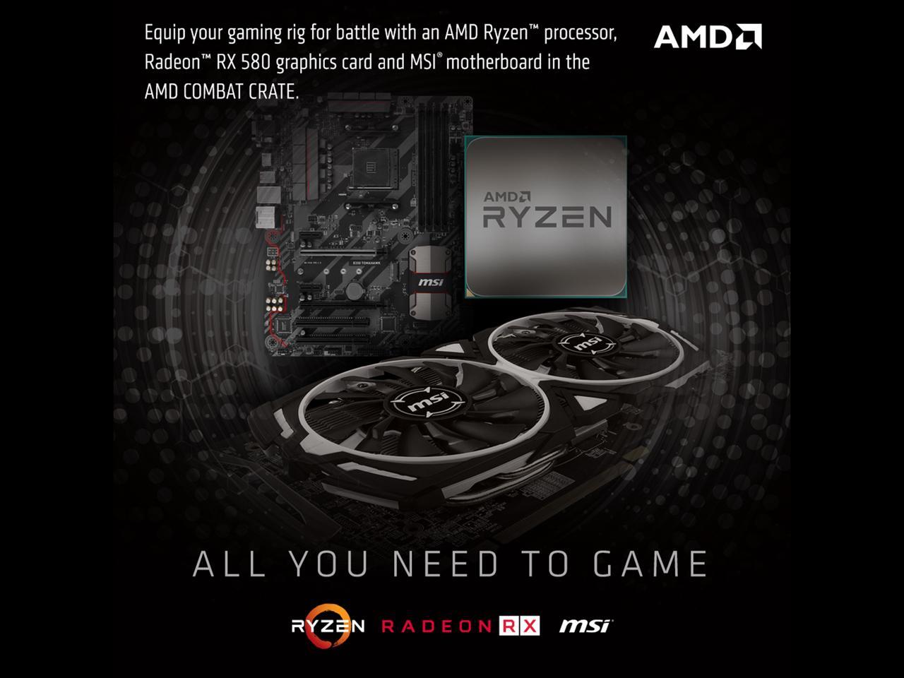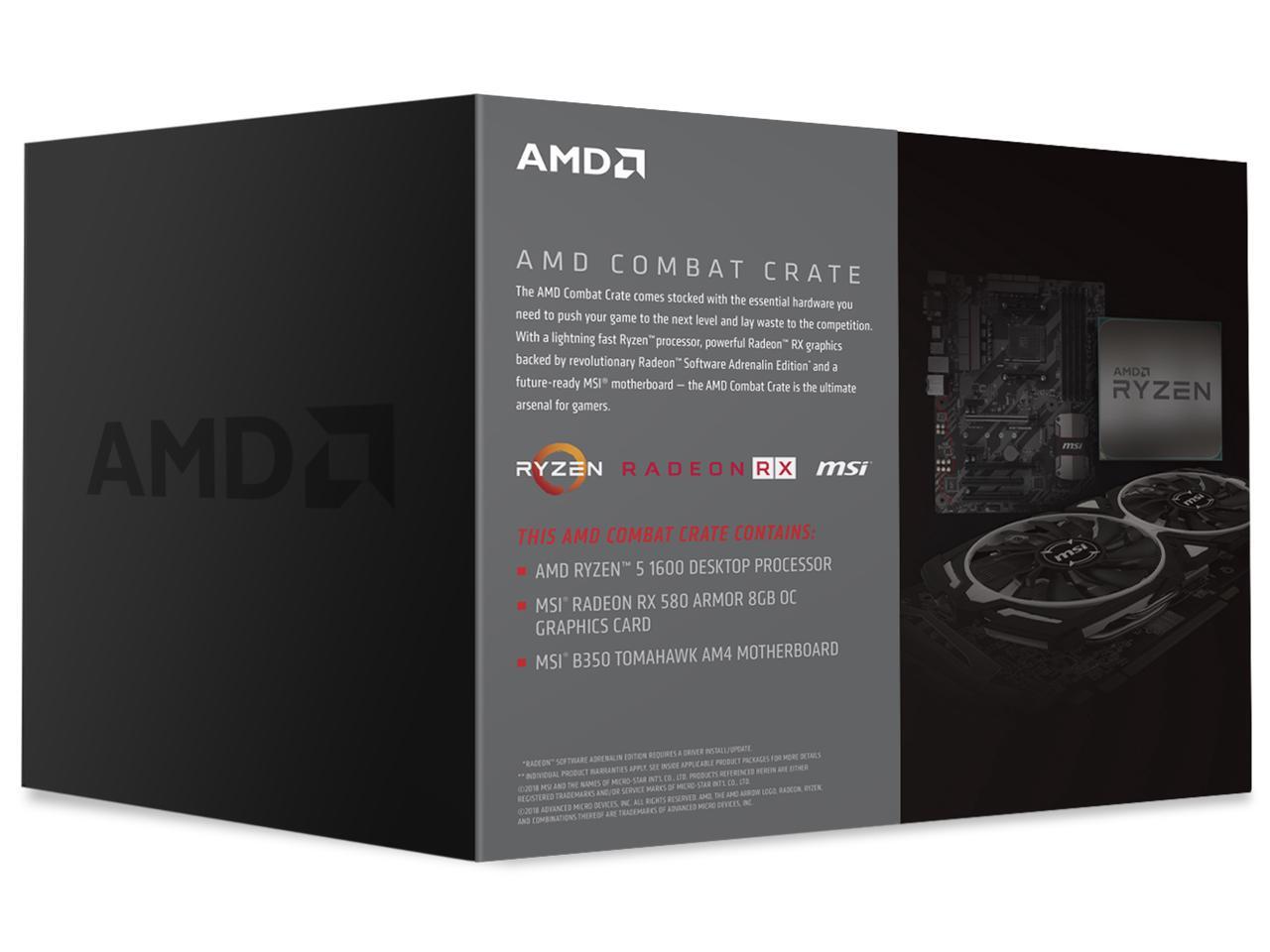 AMD Combat Crate Bundle with Ryzen 5 1600 CPU,MSI Gaming AMD Radeon RX 580 Armor OC 8GB Graphics Card and MSI B350 Tomahawk AM4 Motherboard