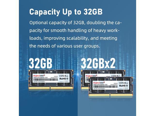 Kingbank 32GB 262-Pin DDR5 SO-DIMM DDR5 5600 (PC5 44800) Laptop Memory Model KBN32G5600
