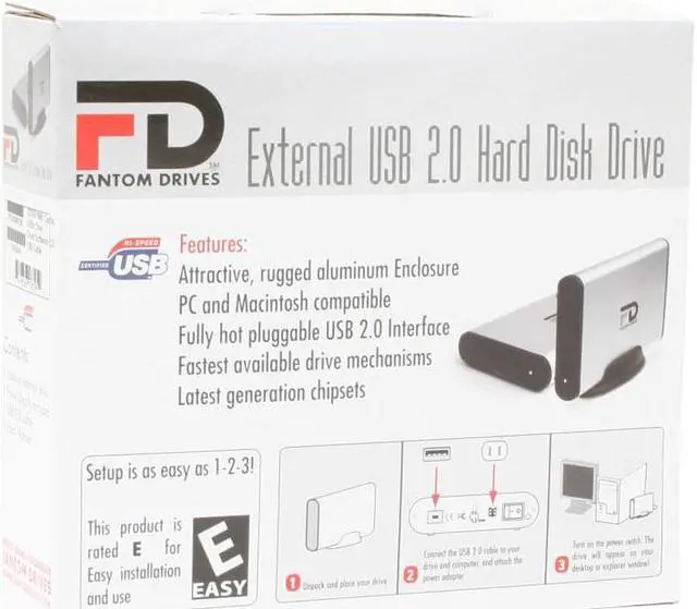 | Features | Fantom Drives Titanium USB 2.0 Hard Drives offer the most affordable storage solution for USB enabled PCs and Macs. These drives provide transfer rates of up to 60MB/sec on USB 2.0 and are fully backwards compatible with USB 1.1. The Titanium USB 2.0 Hard Drive family feature sturdy aluminum casing to provide maximum durability, fanless design for silent operation, and could be mounted horizontally or stand vertically to allow maximum deskspace. From increasing storage space to providing a safe and flexible data backup solution, Fantom Drives Titanium USB 2.0 Hard Drives are ideal for home and business users alike. |