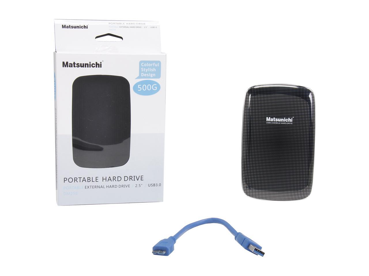 Matsunichi 500GB USB 3.0 2.5" Portable External Hard Drive DM256-BK-500GB Black