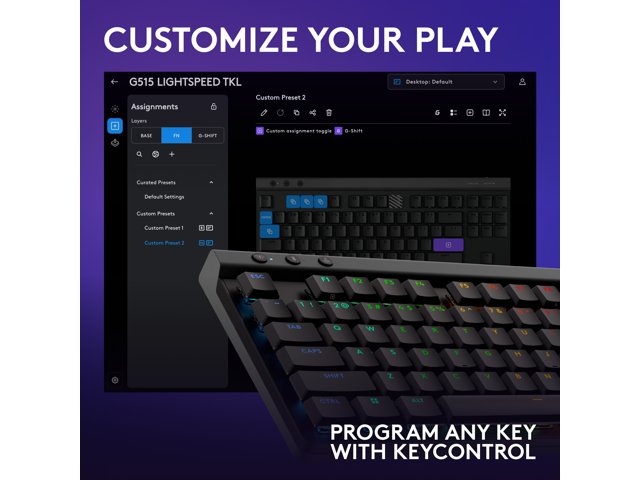 - Mechanical Gaming Keyboard: The Logitech G515 LIGHTSPEED TKL offers a slim profile and tenkeyless design with tri-mode connectivity via LIGHTSPEED wireless, Bluetooth, or wired data transfer
