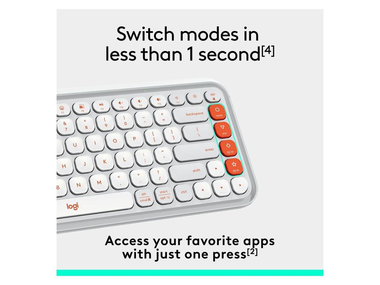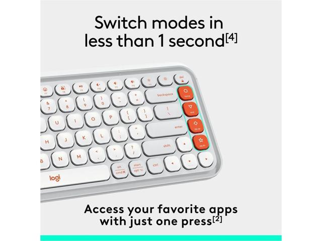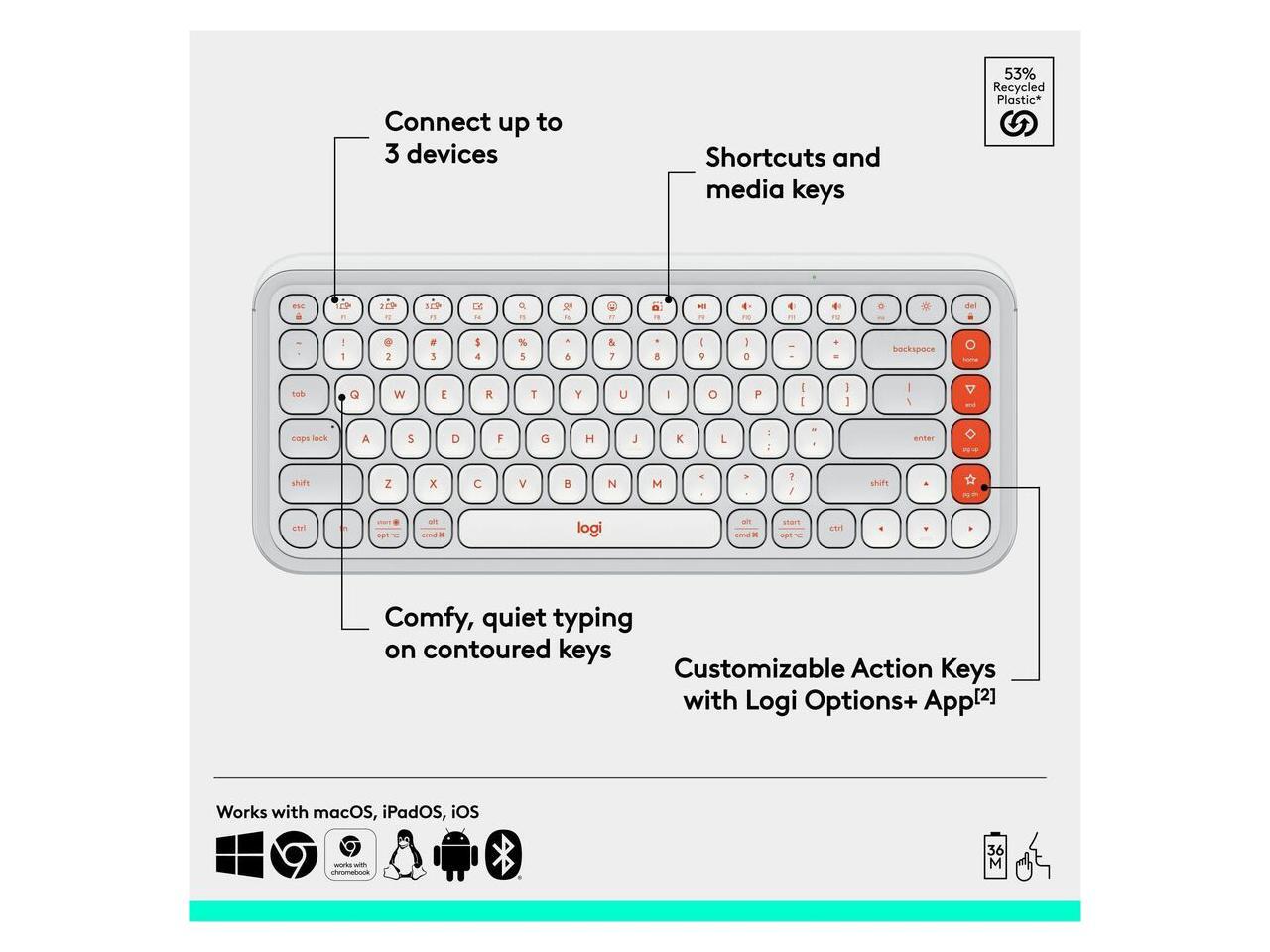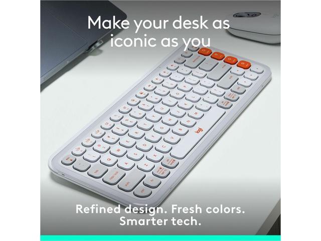 - Proudly express yourself and own your space with the Logitech POP ICON KEYS, a wireless Bluetooth keyboard with a bold aesthetic, comfy typing, and customizable Action Keys (1)