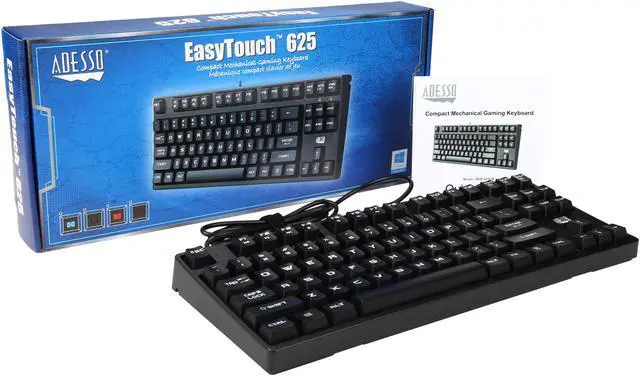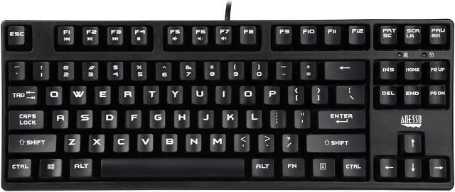 The Adesso® AKB-625UB Compact Mechanical Gaming Keyboard is the perfect keyboard for users that love gaming and efficiency. This sturdy keyboard features crisp mechanical keys for increased productivity, N-Key Rollover allowing up to six keys to be pressed at the same time, multi-functional hotkeys that give you quick access to your media player tools, as well as the ability to lock your Windows key. You can also re-route your USB cable to the front or either side of the keyboard, saving space for the wire, while preventing fraying or damage to the wire. The compact size of this keyboard makes it ideal for any area where spacing is an issue With the smooth action of the mechanical keys you can type faster than you imagined, handling up to 50 million keystrokes. The smooth and crisp tactile feedback allows you to have a faster, more accurate typing experience and contains 45-50g of actuation force!