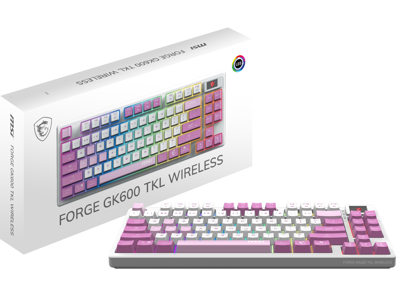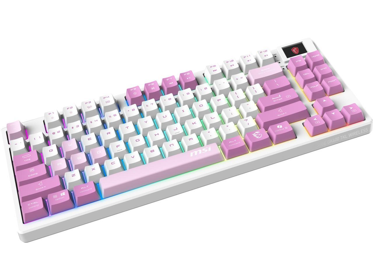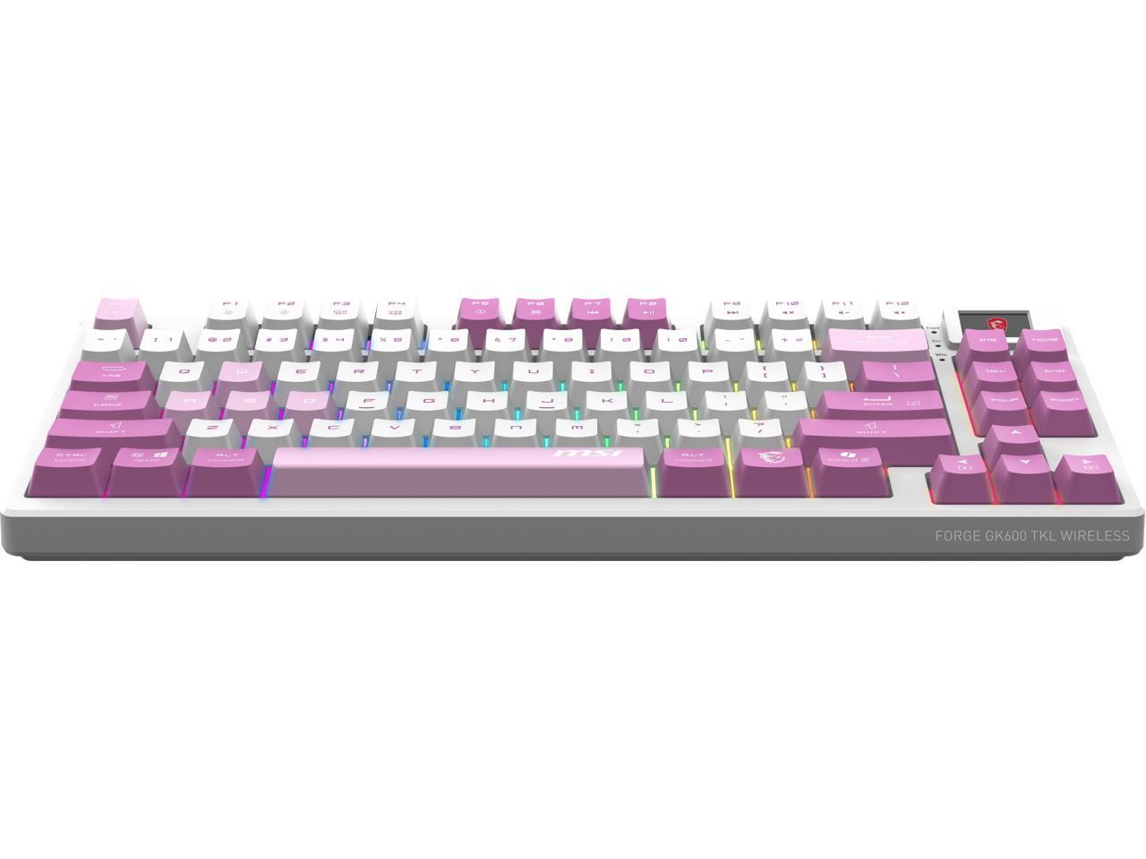 MSI Forge GK600 TKL Wireless VIOLET Gaming Keyboard - Mechanical Linear Switches, Dye-Sublimated PBT Keycaps, Anti-Slip Base, RGB, USB 2.0, Bluetooth, 2.4 GHz