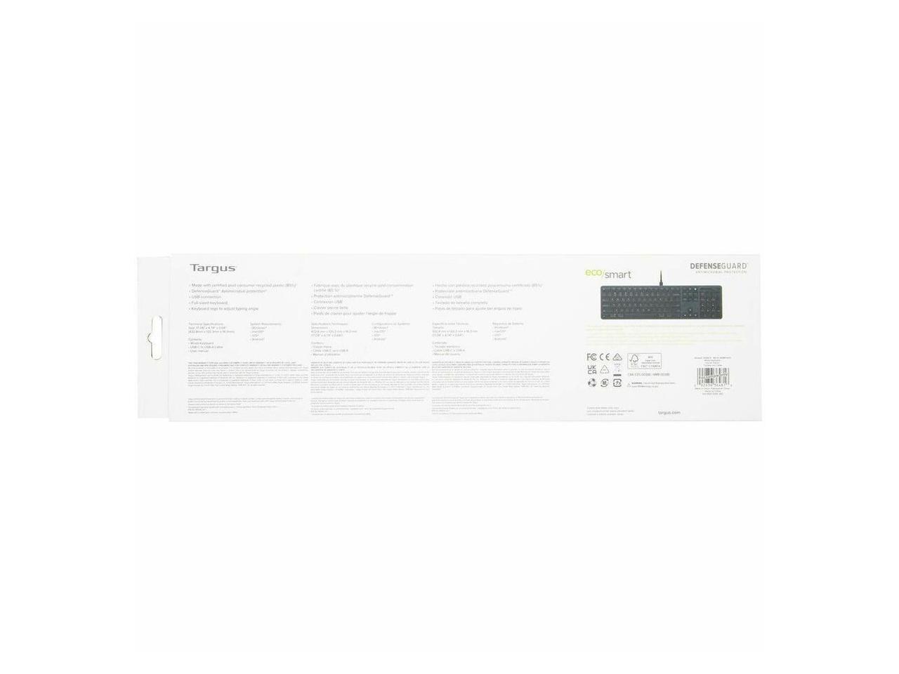 • For an added benefit, this keyboard features Targus DefenseGuard™ Antimicrobial Protection, which creates a cleaner surface and works continuously to protect the keyboard by preventing the growth of microorganisms. Unlike topically applied sprays, DefenseGuard™ keyboards are treated with an antimicrobial additive that does not wear off and lasts for the life of the product.