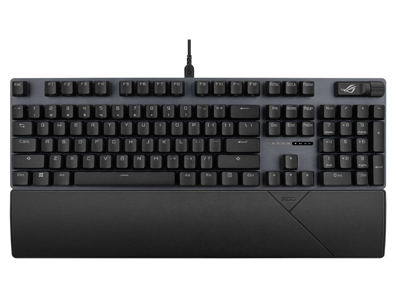 ASUS ROG Strix Scope II X 100% Gaming Keyboard, hot-swappable pre-lubed NX Snow V2 Mechanical switches, Multifunction Controls, PBT doubleshot keycaps, Silicone dampening Foam, and a Wrist Rest