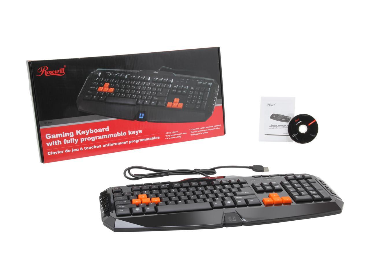 Rosewill Gaming Keyboard RK-8100, Anti-Ghosting feature, Fully programmable keys, 10 profiles setting