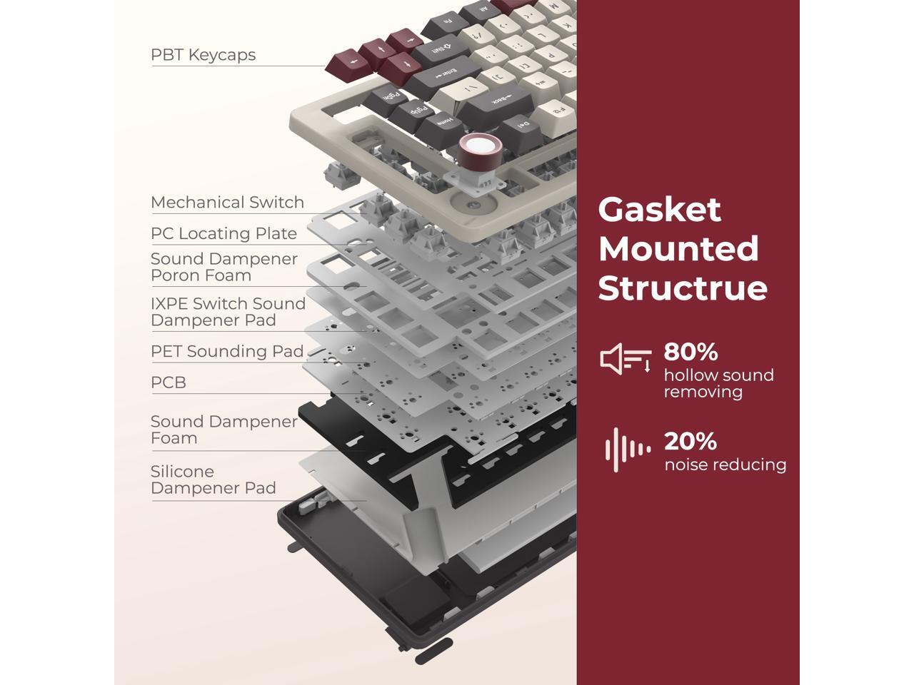 - Featuring a 75% layout with 80 keys, Gasket mount, and hot-swappable sockets for solder-free DIY customization.