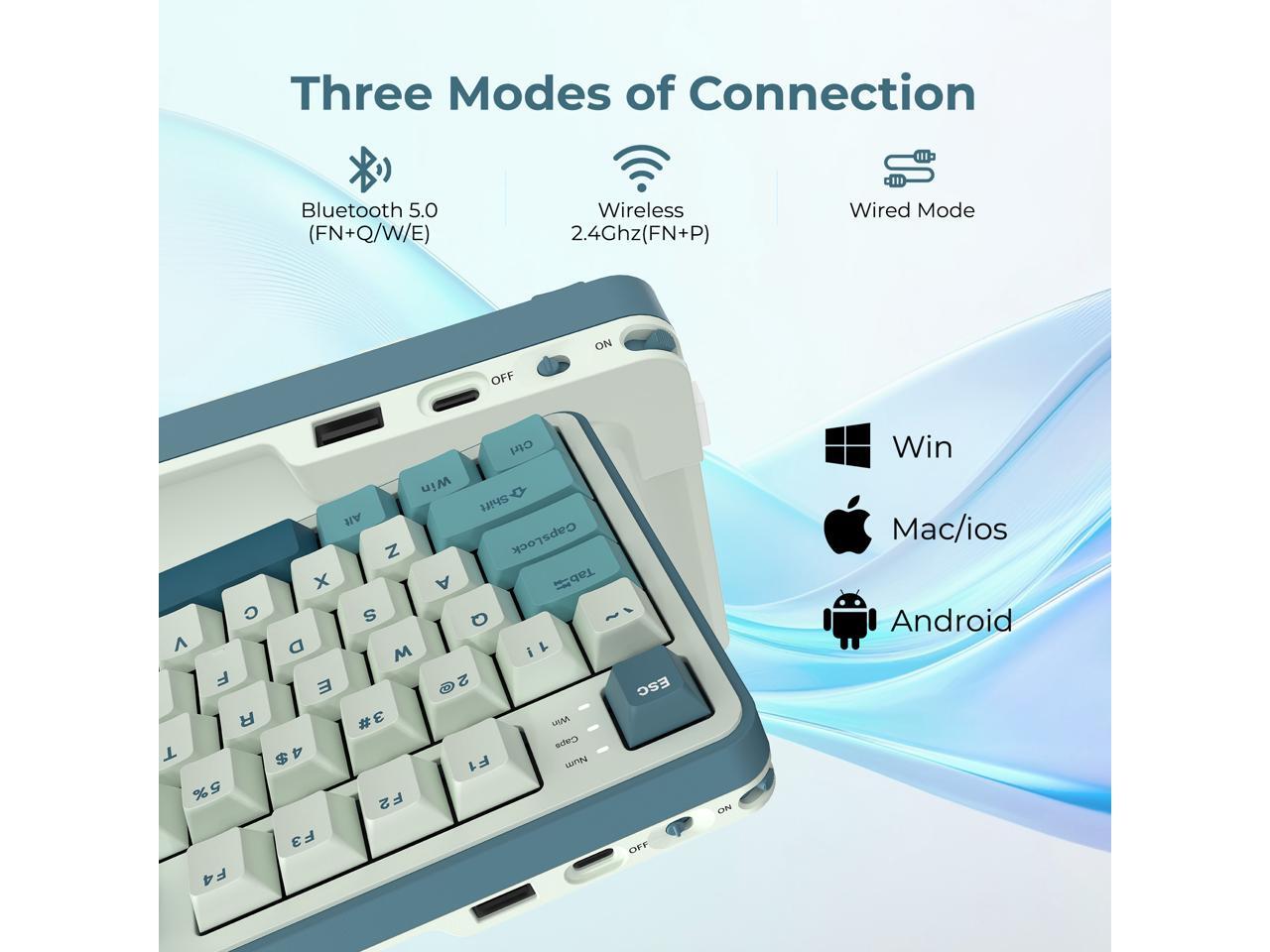 Tri-mode connectivity (BT5.0/2.4G/USB-C) offers versatile, stable, and low-latency typing across multiple devices and platforms.
