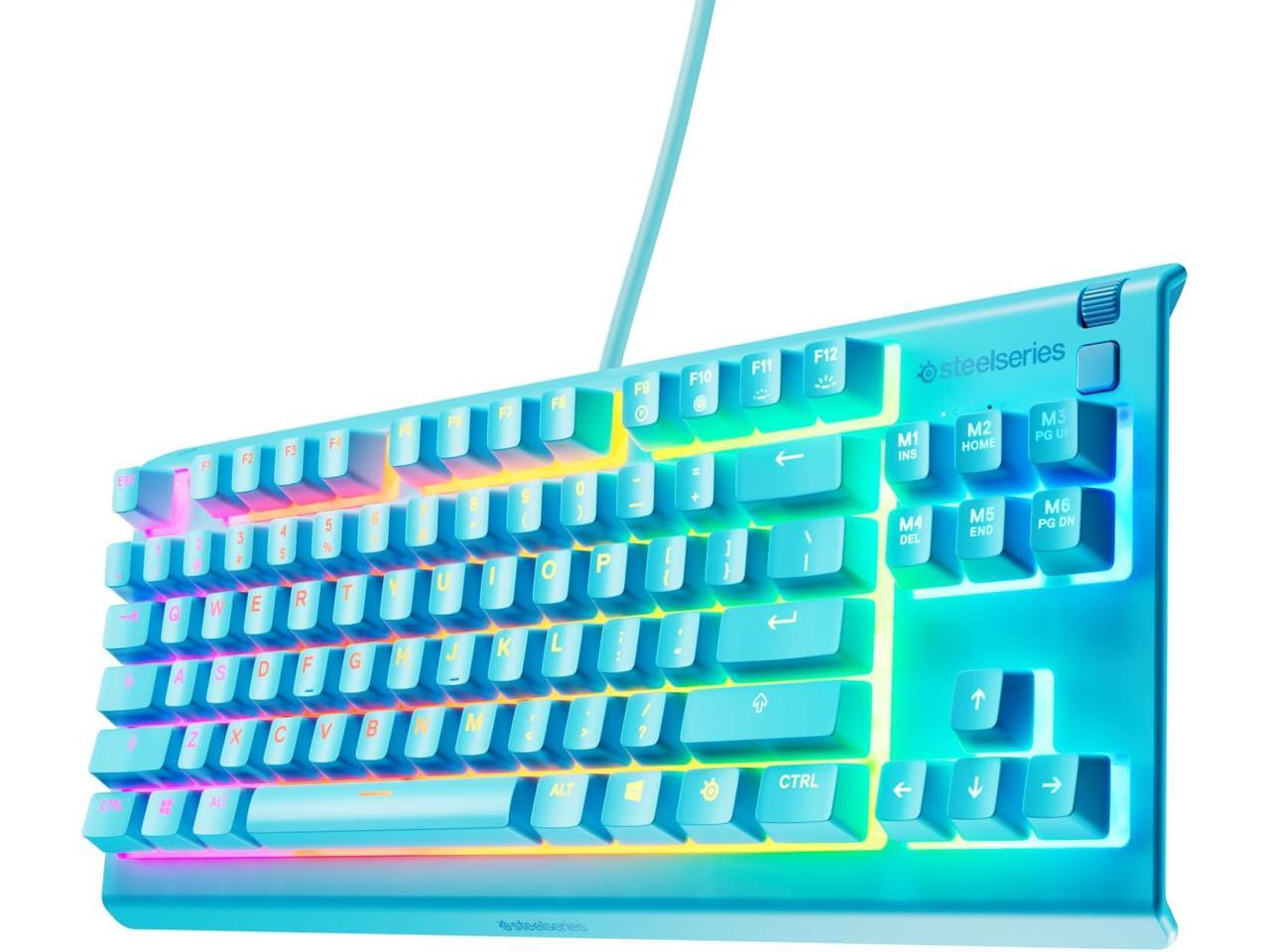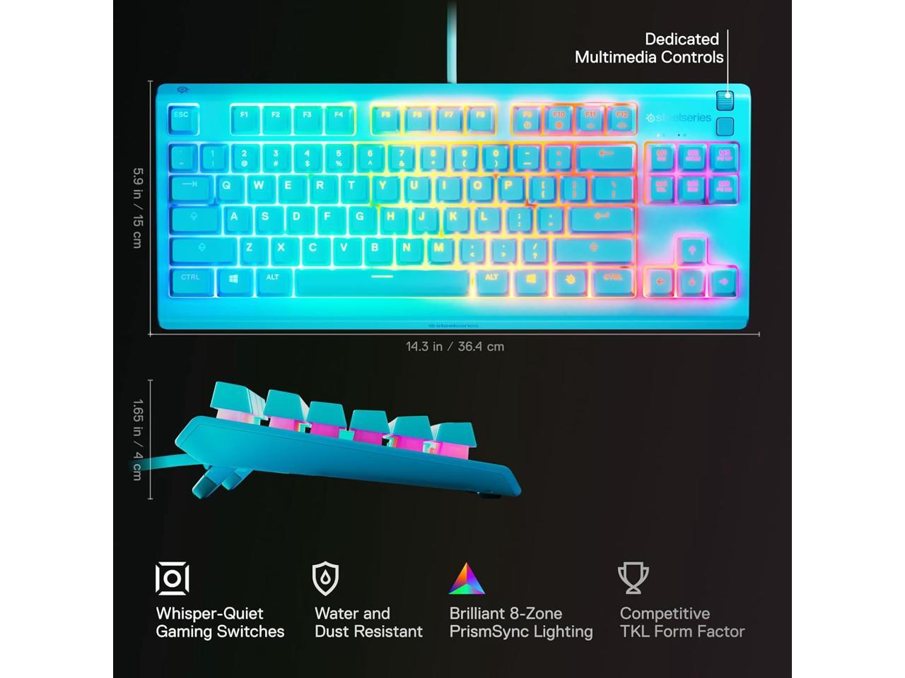 SteelSeries Apex 3 TKL Aqua RGB Gaming Keyboard - Tenkeyless Compact Form Factor, 8-Zone RGB Illumination, Water and Dust Resistant, Whisper-Quiet Gaming Switch - Aqua