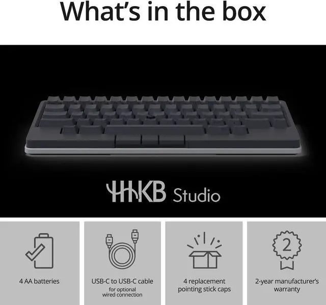 With integrated mouse functionality including a pointer stick cursor and three mouse buttons, you eliminate unnecessary hand movement and can comfortably use your HHKB Studio anywhere.