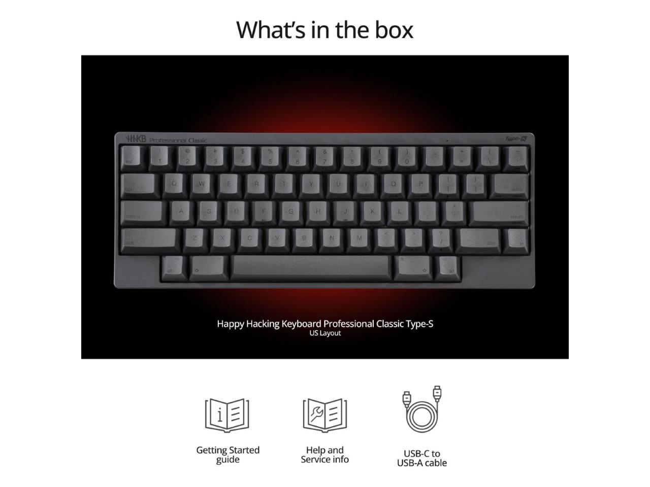 HHKB Professional Classic Type-S Gaming Keyboard CG01000-399207, Compatible with PC and MAC, USB Type-C connection for wired, 2 Year Warranty, Charcoal