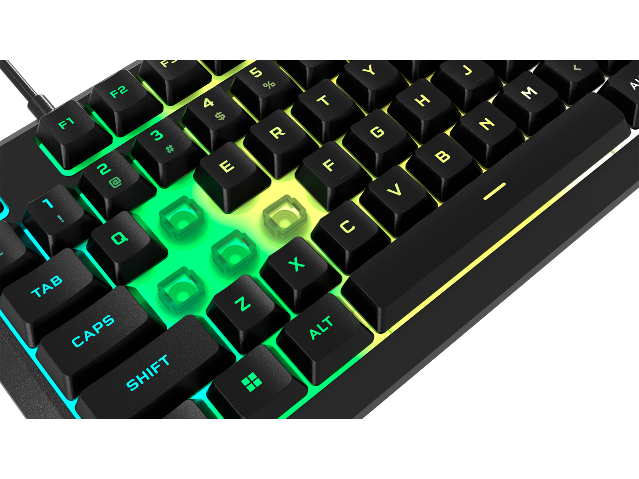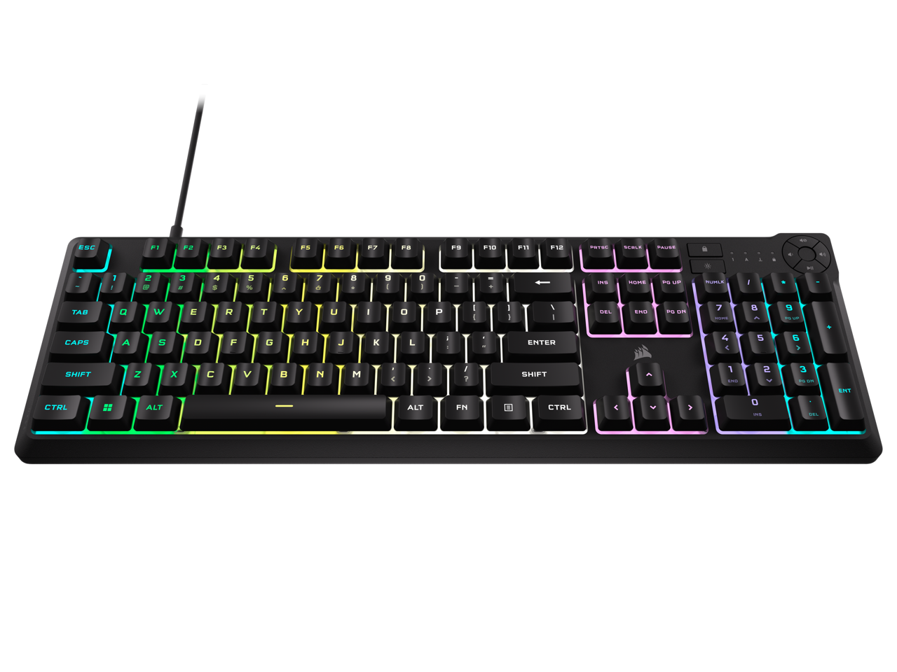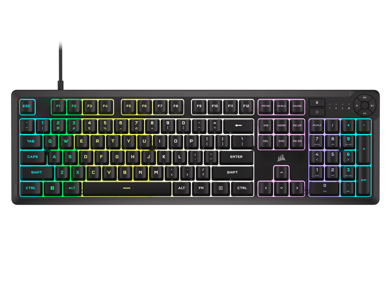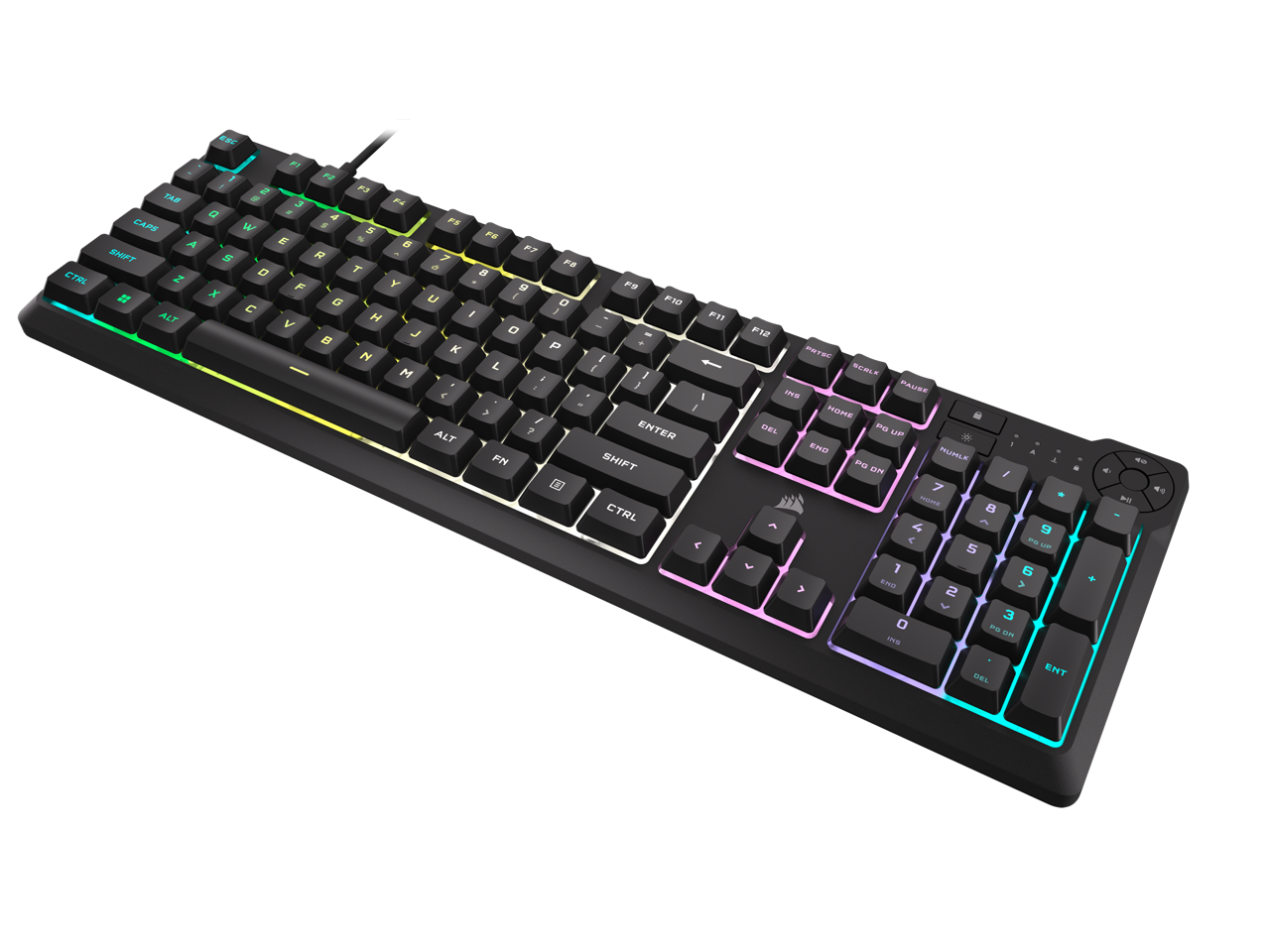- The CORSAIR K55 CORE gaming keyboard puts you on the winning path. Brighten your gaming sessions with fully customizable ten-zone RGB backlighting. Quiet, responsive membrane switches mean you can type, chat, and play in any setting. Take control with four dedicated media buttons, so you never have to pause the action to adjust volume and playback.