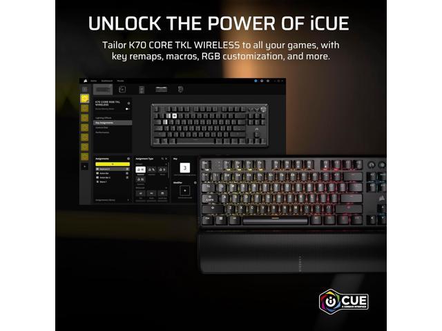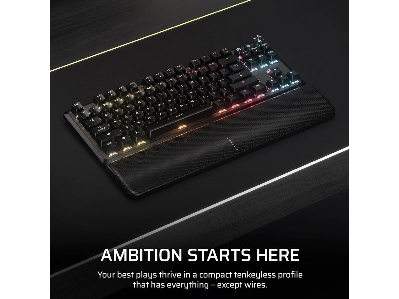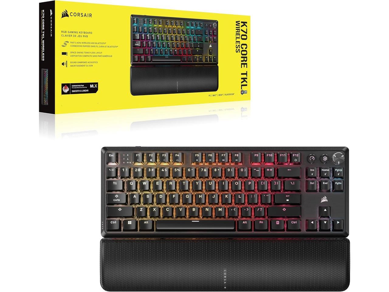 Corsair K70 CORE TKL Wireless RGB Mechanical Gaming Keyboard – Pre-Lubed MLX Red v2 Linear Switches, SOCD, ABS Double-Shot Keycaps, Sound Dampening, 1000Hz Polling, QWERTY NA – Black