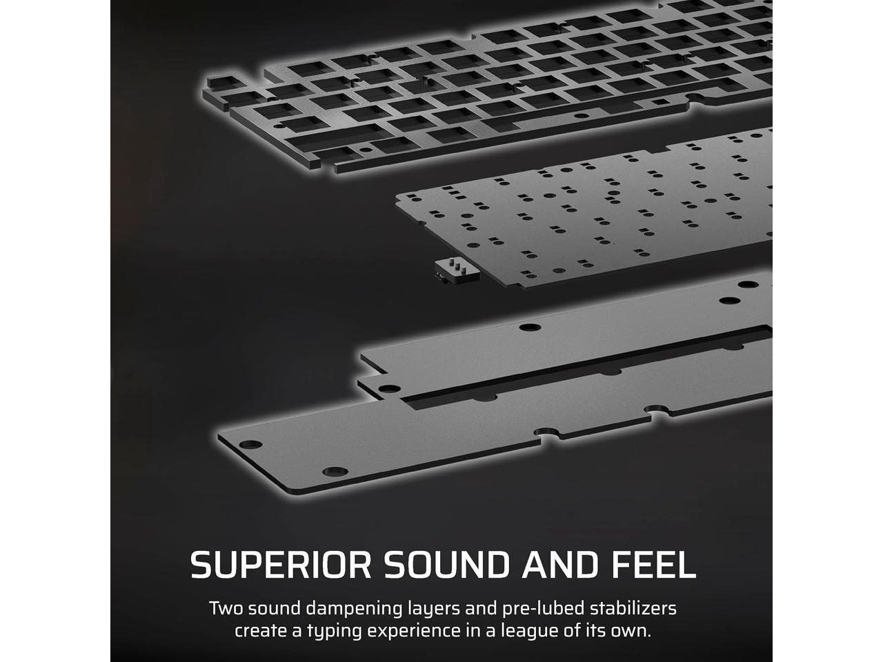 Ultra-Satisfying Typing Acoustics: Two sound dampening layers made from premium foam material, plus pre-lubricated stabilizers, temper unwanted pings and clacks for pleasantly subdued typing.