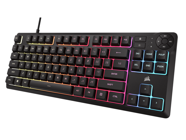 Corsair K55 Core TKL RGB Gaming Keyboard CH-9216065-NA, Tenkeyless Quiet Membrane Keys, 8-Zone RGB, 1000Hz Polling Rate, Media Keys, Spill-Resistant, USB Wired - Black