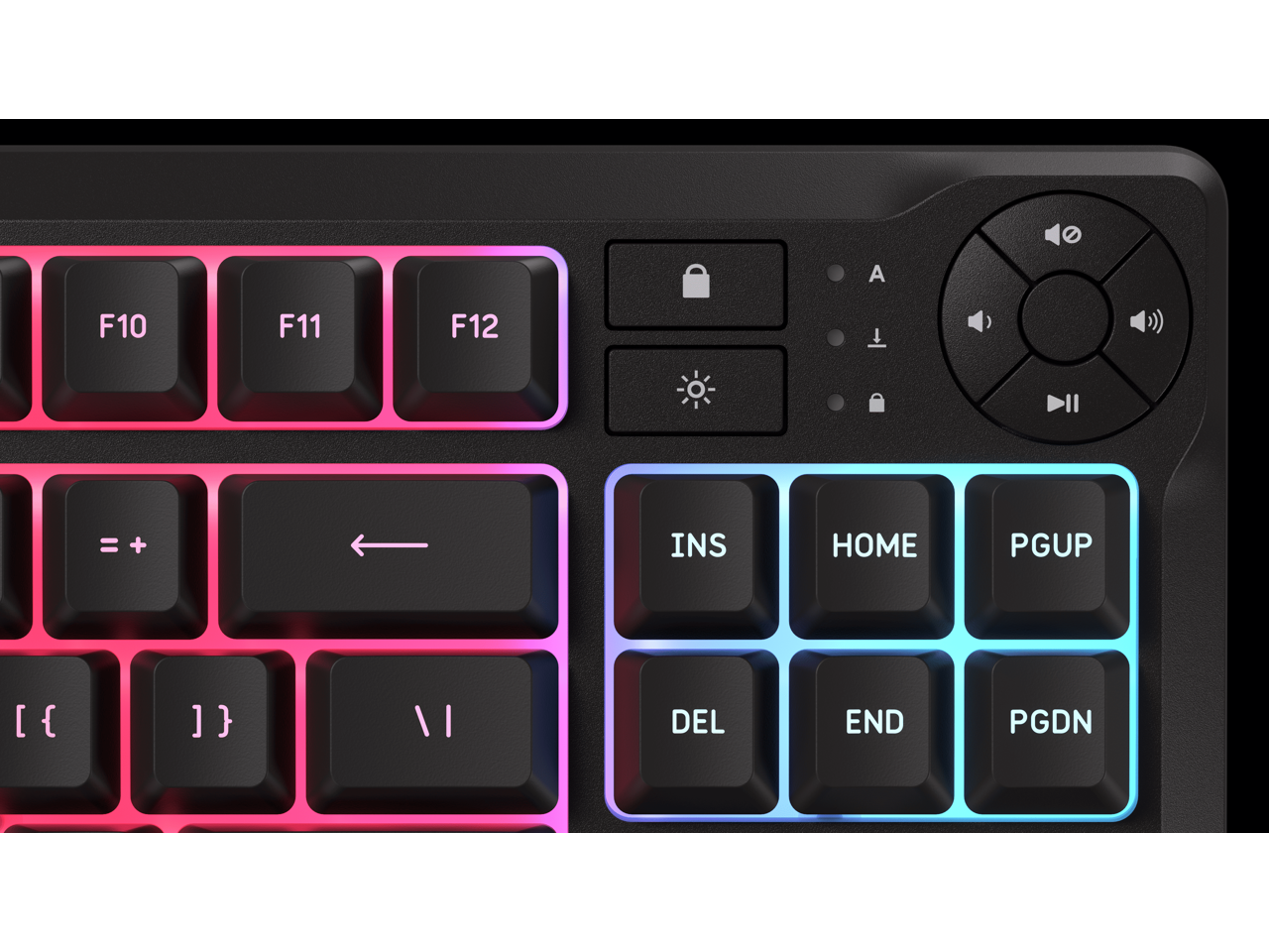 - Convenient Media Controls: Stay locked in the zone with four dedicated media buttons. Control volume, playback, Win lock, and brightness buttons all at the touch of a button.