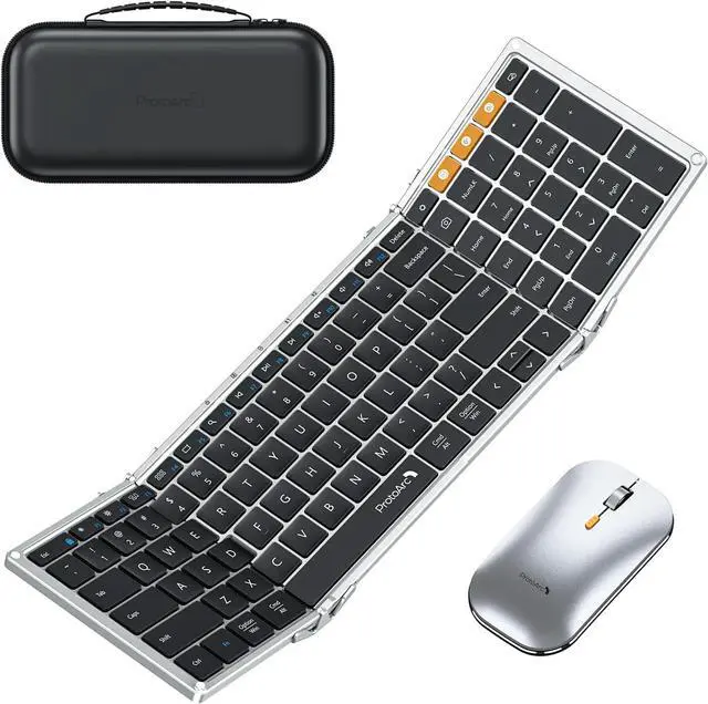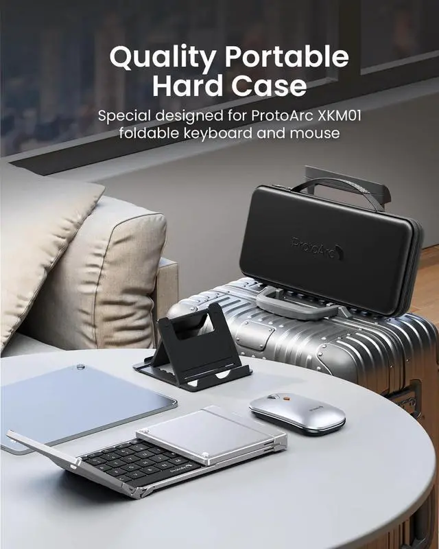 ProtoArc Tri-Fold Keyboard, the perfect accessory for on-the-go officing. This compact and portable keyboard can be easily folded in thirds, making it easy to slip into a bag or backpack. But don't let its small size fool you – the XKM01 Tri-Fold Keyboard has all the functionality of a full-sized keyboard.
