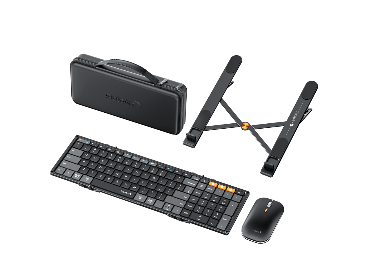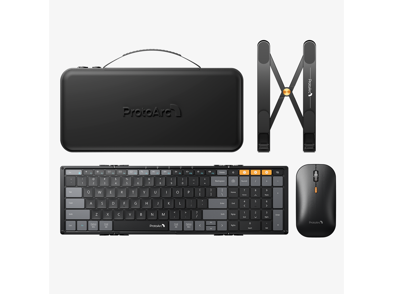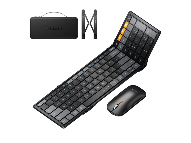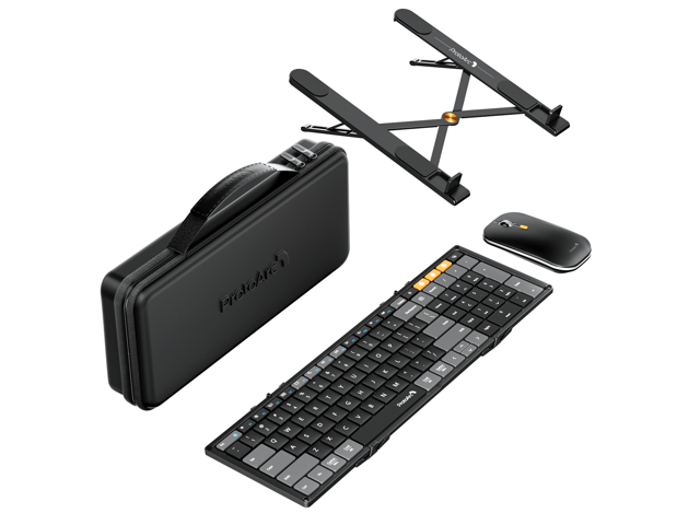 ProtoArc Tri-Fold Wireless Keyboard Mouse Combo with Laptop Stand -portable Bluetooth, XKM01 CaseUp - Black