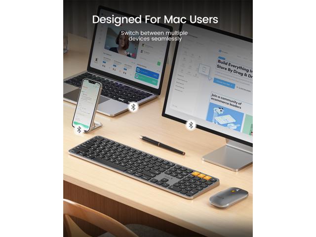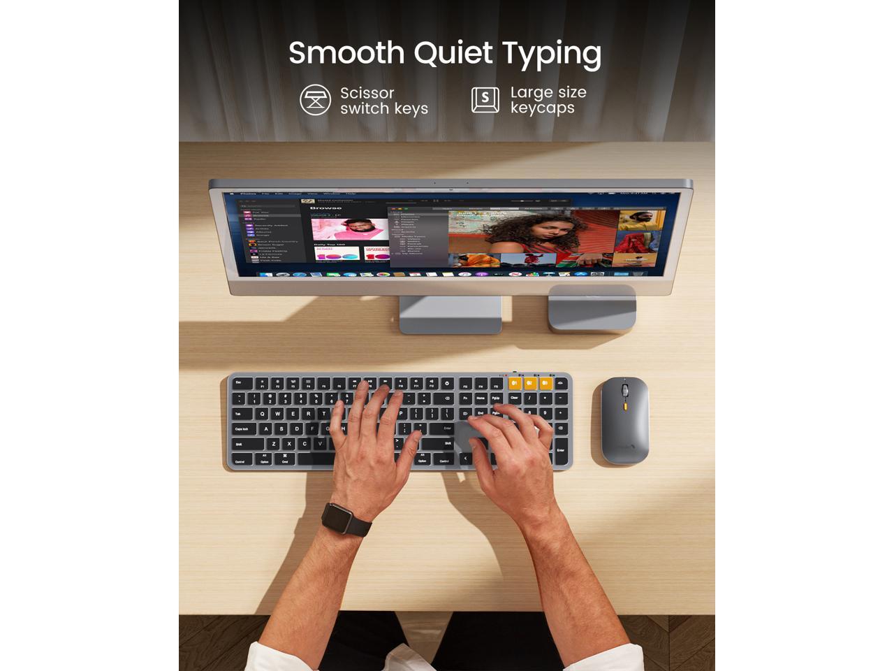 - Switch Up To 3 Devices: Bluetooth keyboard mouse for mac can connect to three different devices simultaneously through its triple Bluetooth channels. You can easily switch between the devices by clicking on the mode switch button. Note: Connection is established solely through Bluetooth. USB dongle is not included.