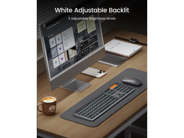 - Backlit illuminated Keys: This backlit wireless keyboard for mac comes equipped with soft white LED backlighting and boasts three adjustable brightness levels (low-mid-high) to suit your individual needs. Perfect for use in dimly lit environments, the gentle illumination won't strain your eyes, and the brightness can be easily customized to your liking.