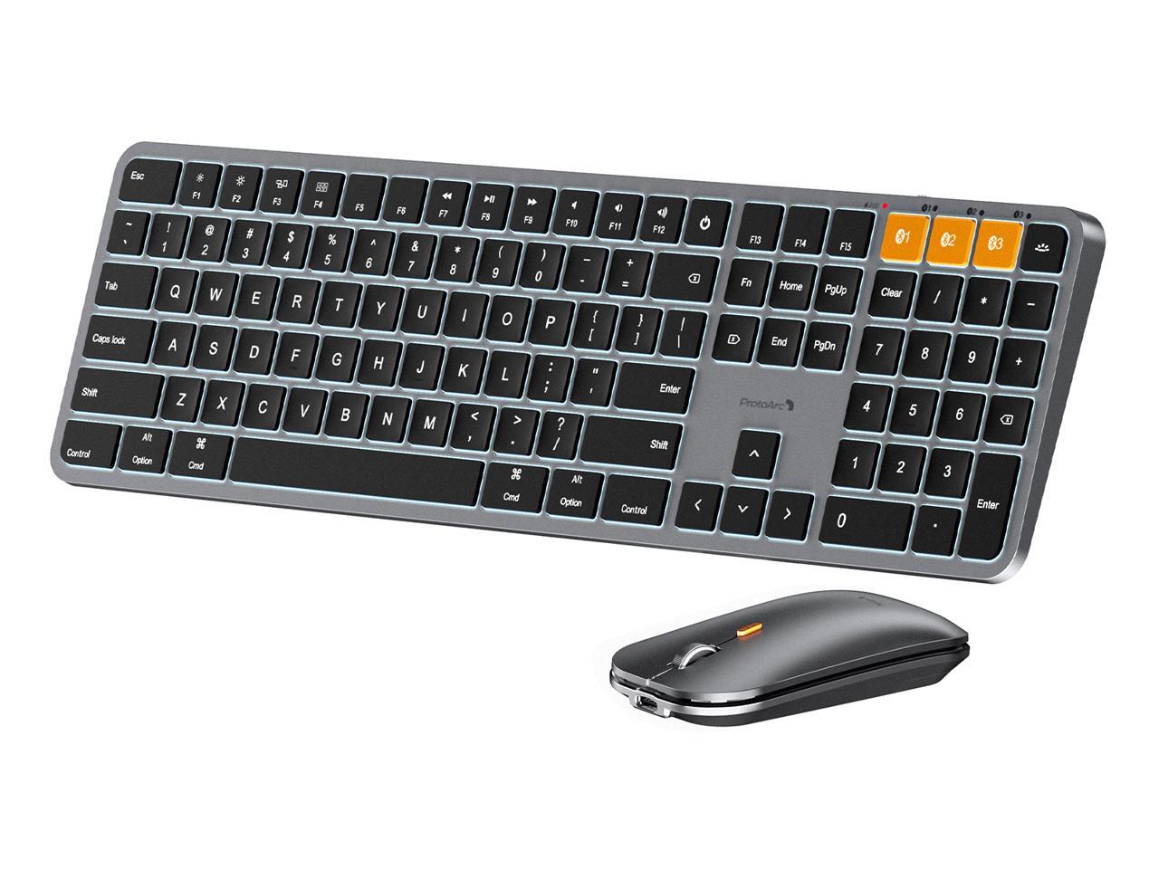 ProtoArc Backlit Bluetooth Keyboard and Mouse for Mac - Multi-Device Wireless Keyboard Mouse for Mac, Full Size Rechargeable for MacBook Pro/Air, iPhone, iPad - Space Gray