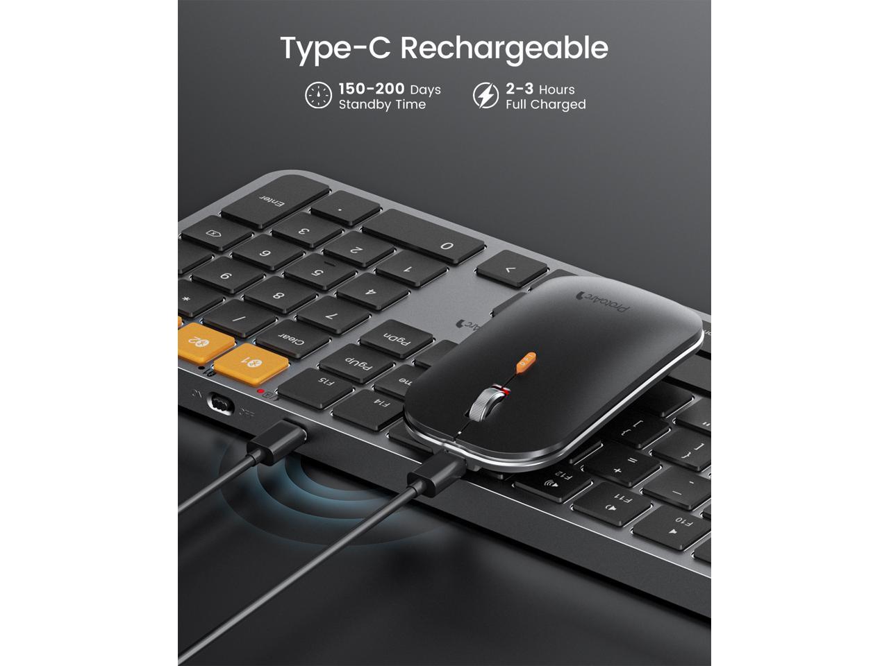 - Rechargeable and Power Saving: The keyboard and mouse for mac feature built-in rechargeable batteries, 1200mAh for keyboard, 300mAh for mouse. Additionally, if the keyboard is not used for 60min, it will enter sleep mode and can be awakened by pressing any key. Backlighting needs to be turned on again.