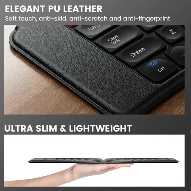 Keyboard housed with soft PU leather case. Really nice hand-feeling and clean appearance.