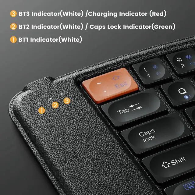XK03 Foldable bluetooth keyboard allows you to pair up to 3 devices on triple bluetooth channels simultaneously and easy switch between them.