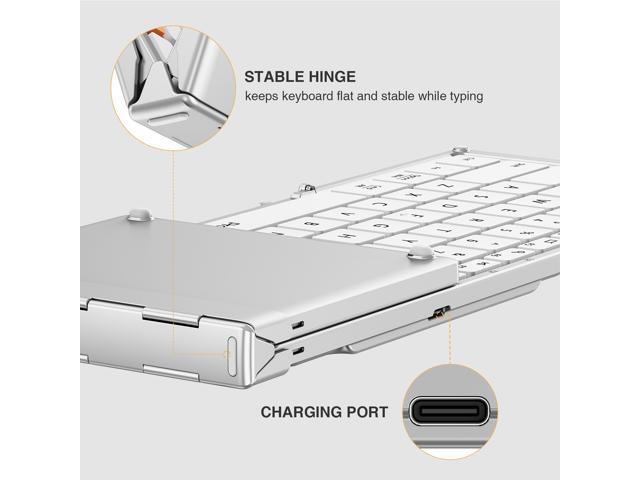 - Business Travel Essential: The collasible keyboard can folds into a small size(8.46 x 4.68 x 0.78 in) for taking on the go. Internal aluminum hinges survive 10,000+ folds, tougher for frequent trips. The rigid hinge maintains keystroke stability whether you're at a coffee shop or airport lounge.