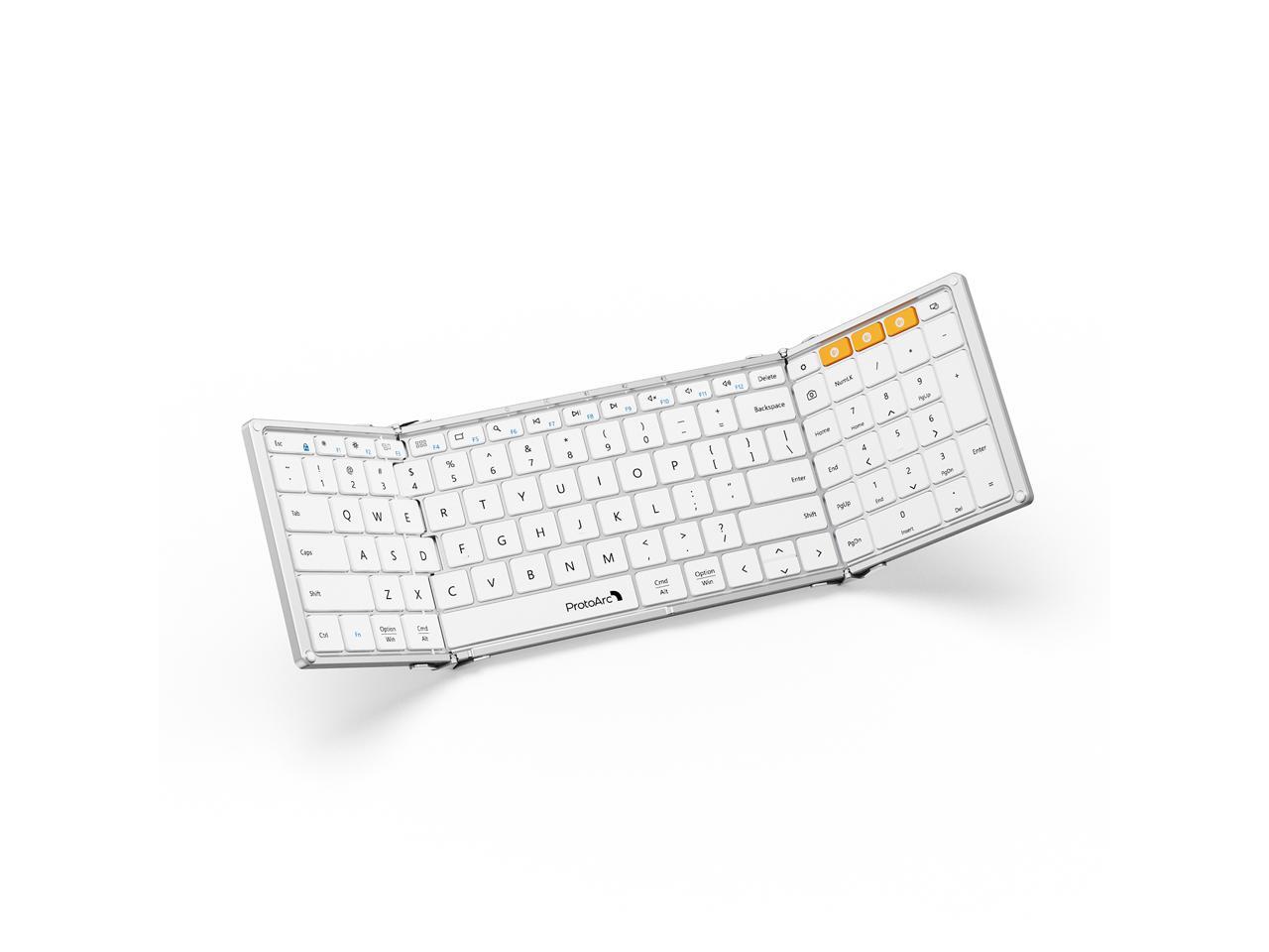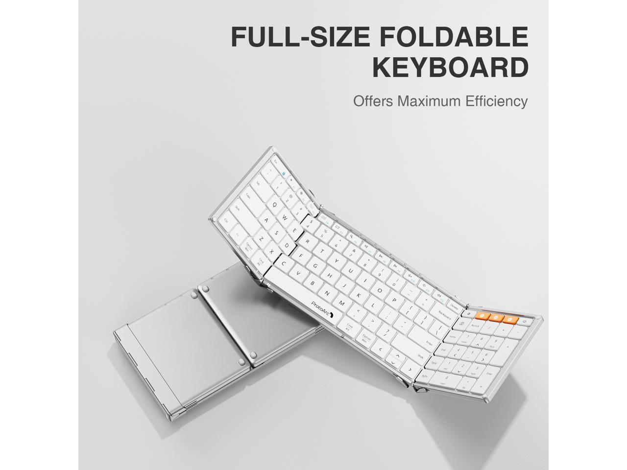 ProtoArc Tri-Fold Bluetooth Keyboard - Folding Wireless Portable Keyboard with Numeric Keypad, Full-Size Travel Keyboards for iPad Tablet Smartphone Laptop PC Windows iOS Android, XK01 - White Silver