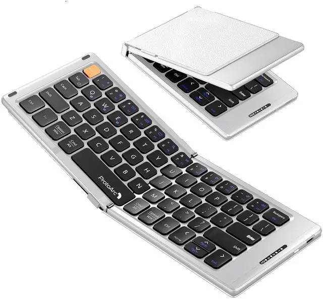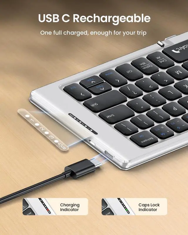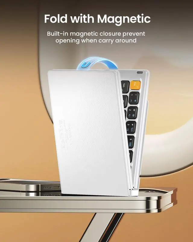 | Features | 1) Folding Mini Keyboard: Only a 7.8-ounce palm-sized foldup keyboard is designed in two-fold and compact enough to save desk space or take it on the go. Covers with PU Leather surface, good texture and protection, a perfect companion for business travelers. Maximum convenience for you with minimum weight and size. 2) Compact-Sized Portability: With a travel size portable keyboard that easily connects to bluetooth enable device you need to use it on, you can work or relax when go out to different place like cafe or libraries. Warm reminder: Due to the small compact keyboard layout, it may cause inconvenience to your typing habits. Our design focuses on providing convenience for brief use on the go, making it especially suitable for mobile phone and tablet users(Note: Smaller than some foldable models. Unfolded Size: 10.76*4.07 in. Keycap Dimension 0.55". Check size before purchase). 3) Multi-device Bluetooth Keyboard: Our foldable keyboard with triple Bluetooth channels, which will maintains stable connectivity and fast response within 33ft operating range(Note: Turn on the Power button before connecting). Supports up to 3 devices such as ipad, smartphone, tablet or laptop. It can be your perfect partner to help you reply to emails, edit excel sheets or write down your ideas anytime. 4) Type C Simply Recharge: The mobile keyboard is equipped with a rechargeable battery and On/Off switch. Easily recharged via the included Type-C cable. 2 hours charged(After full charged, the charging indicator turns green) delivers up to 150+ days standby time, great for for working outside of office. Also has an auto-sleep feature, helps maximize the amount of use get from each charge. |