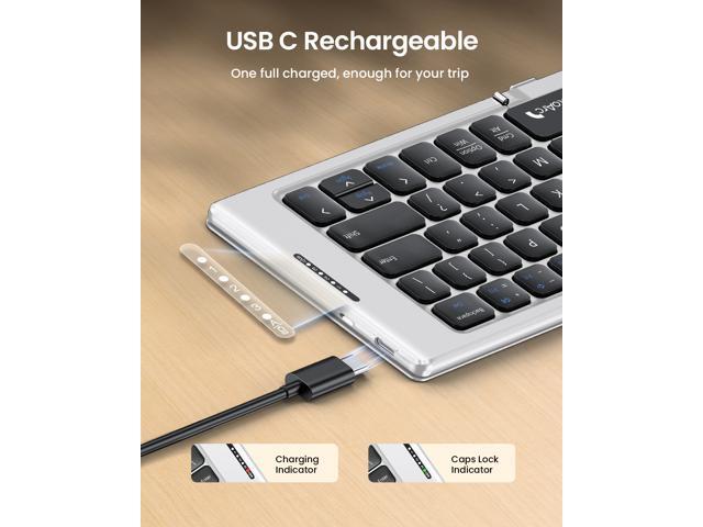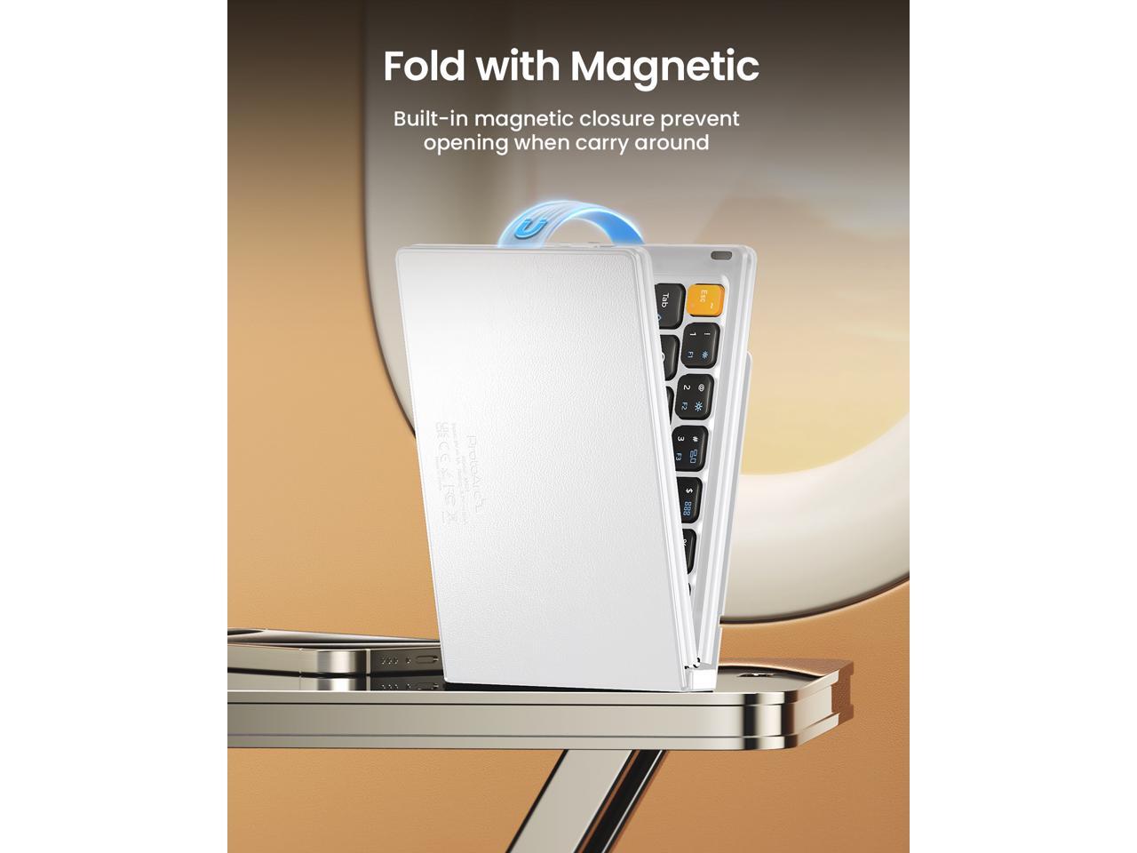 - Folding Mini Keyboard: Only a 7.8-ounce palm-sized foldup keyboard is designed in two-fold and compact enough to save desk space or take it on the go. Covers with PU Leather surface, good texture and protection, a perfect companion for business travelers. Maximum convenience for you with minimum weight and size.