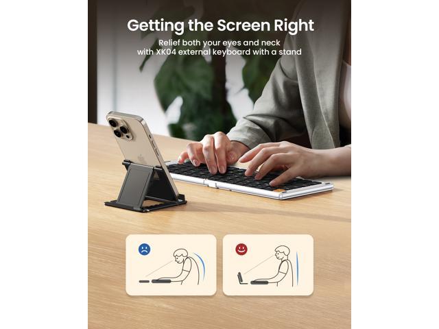 - Compact-Sized Portability: With a travel size portable keyboard that easily connects to bluetooth enable device you need to use it on, you can work or relax when go out to different place like cafe or libraries. Warm reminder: Due to the small compact keyboard layout, it may cause inconvenience to your typing habits. Our design focuses on providing convenience for brief use on the go, making it especially suitable for mobile phone and tablet users(Note: Smaller than some foldable models. Unfolded Size: 10.76*4.07 in. Keycap Dimension 0.55". Check size before purchase).